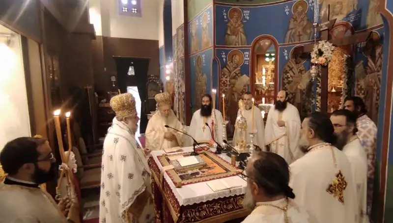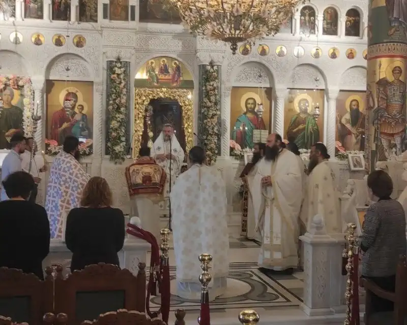 Στον Όρθρο χοροστάτησε ο Σεβασμιώτατος Μητροπολίτης Γόρτυνος και Μεγαλοπόλεως κ. Νικηφόρος, ο οποίος και προέστη στη Θεία Λειτουργία με συλλειτουργό τον Σεβασμιώτατο Ποιμενάρχη μας, Μητροπολίτη Χαλκίδος κ. Χρυσόστομο.