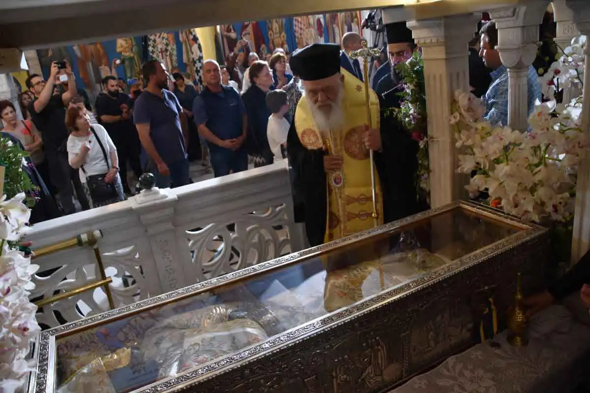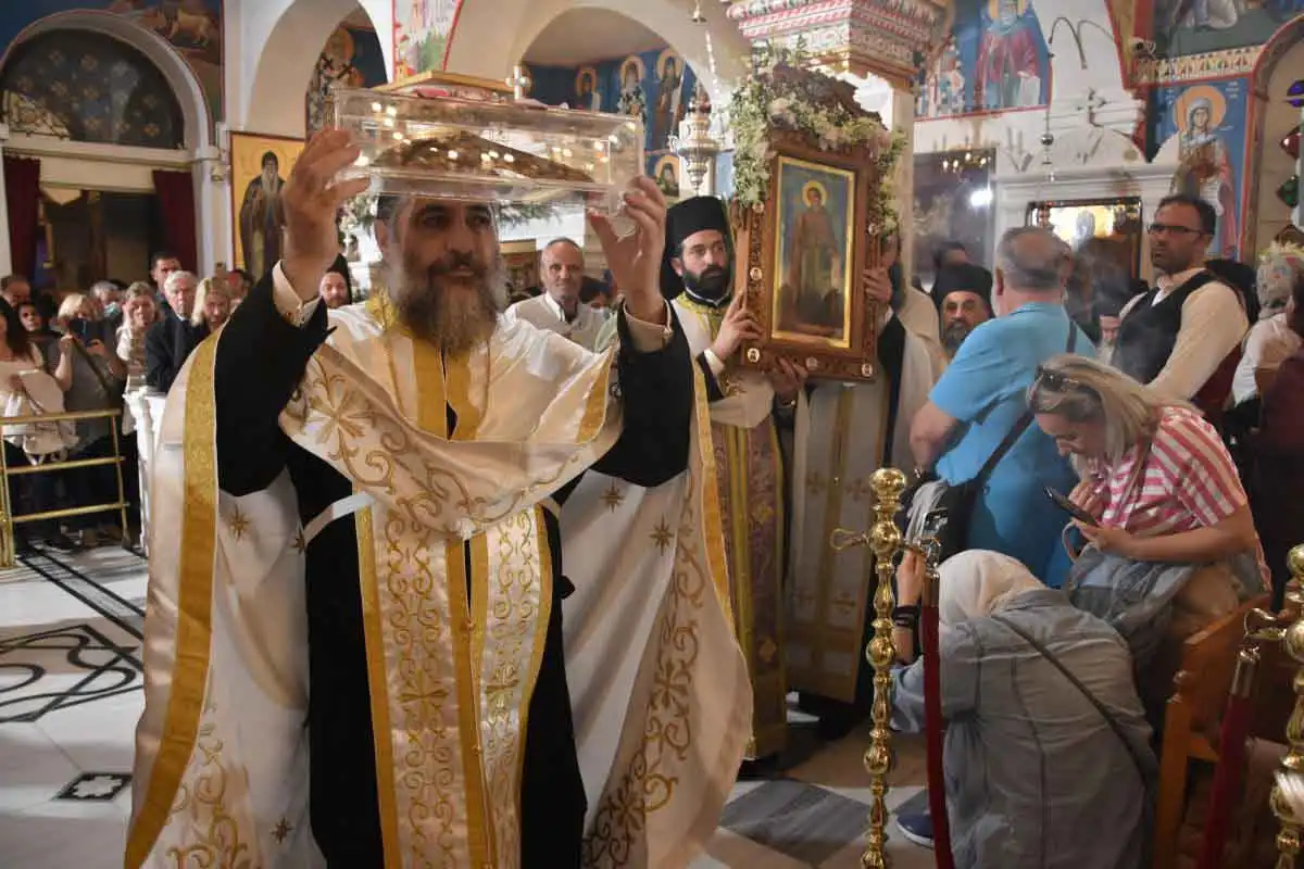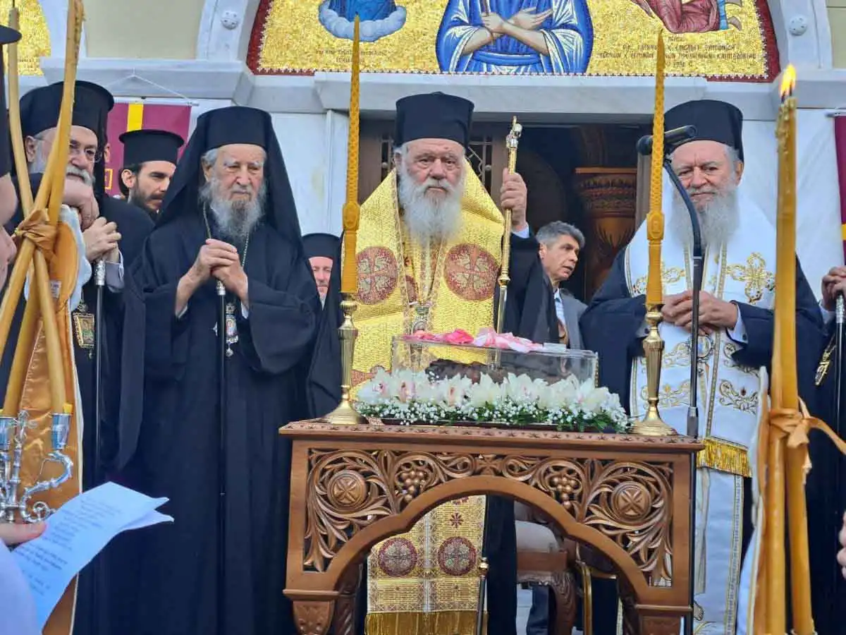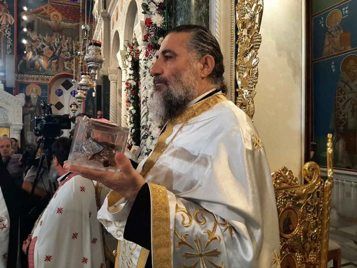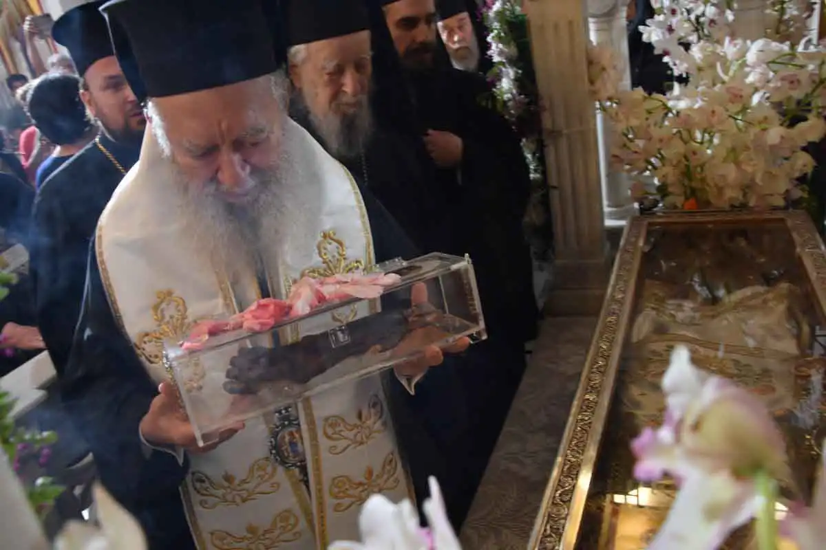 Το ιερό δεξιό χέρι του Αγίου, σήμερα, εκατό χρόνια μετά τον ερχομό του ιερού λειψάνου του στην Ελλάδα, επιστρέφει και τοποθετείται στη θέση του.