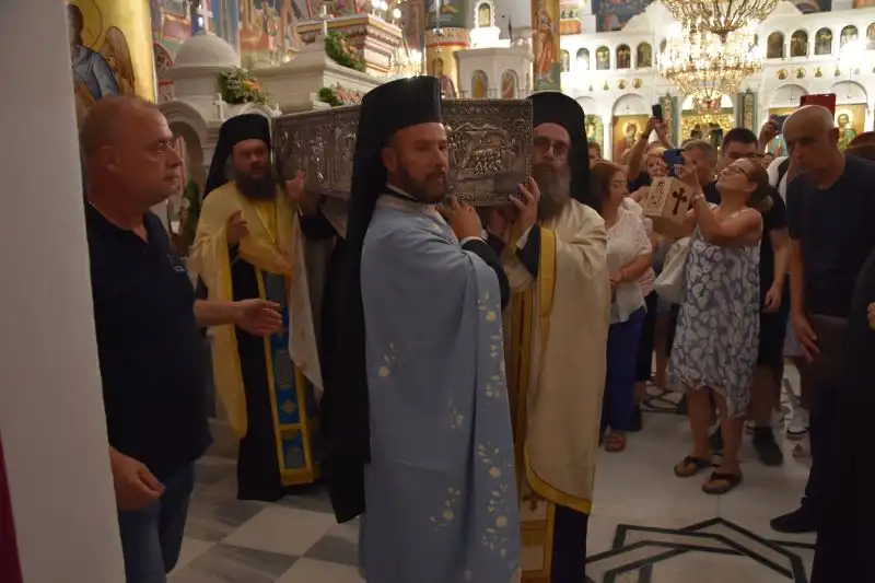 Την Τετάρτη 7 Αυγούστου 2024, τελέσθηκε ο Όρθρος, χοροστατούντος του Σεβασμιωτάτου Μητροπολίτου Φιλίππων, Νεαπόλεως και Θάσου κ. Στεφάνου και εν συνεχεία το Αρχιερατικό Συλλείτουργο προεξάρχοντος του Σεβασμιωτάτου Μητροπολίτου Θεσσαλιώτιδος και Φαναριοφερσάλων κ. Τιμοθέου με την συμμετοχή όλων των παραπάνω Αρχιερέων.