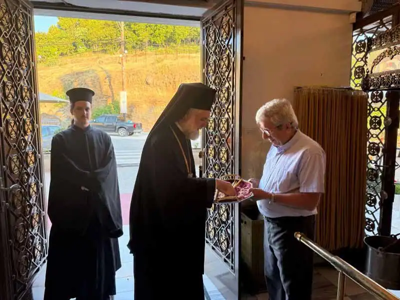 Στον Προσκυνηματικό Ι. Ναό του οσίου Ιωάννου του Ρώσσου, την Κυριακή 13 Ιουλίου 2025, χοροστάτησε κατά τον Όρθρο και προέστη κατά τη Θεία Λειτουργία ο Θεοφιλέστατος Επίσκοπος Σκοπέλου κ. Νικόδημος.