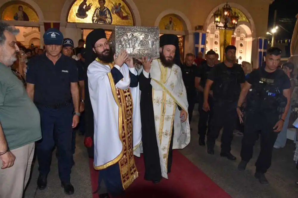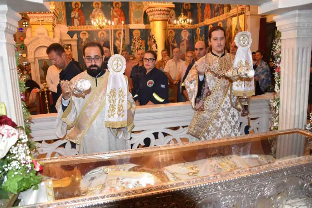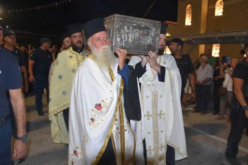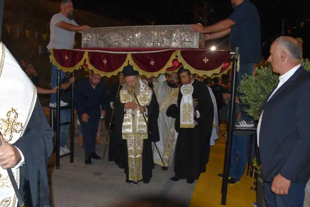 Μετά τον Εσπερινό πραγματοποιήθηκε, με πολυπληθέστατη συμμετοχή ευσεβών προσκυνητών, της Φιλαρμονικής του Δήμου Χαλκιδέων, μαθητικών αντιπροσωπειών των Σχολείων του Προκοπίου με τις σημαίες τους, τμημάτων πολιτιστικών συλλόγων, εκπροσώπων του Πυροσβεστικού Σώματος και του Συλλόγου Εθελοντικών Δυνάμεων Δασοπροστασίας και Διάσωσης Προκοπίου Ευβοίας, η λιτάνευση του αφθάρτου σκηνώματος του Οσίου Ιωάννου και της ι. εικόνος των Αγίων Κωνσταντίνου και Ελένης, όπως έπραξαν τον Αύγουστο του 2021, υπό την απειλή της πύρινης λαίλαπας, οι δύο Ιερείς, ο μακαριστός πρωθιερέας του Ι. Προσκυνήματος, πρωτοπρεσβ. Νικόλαος Βερνέζος και ο Εφημέριος της Ενορίας Αγίων Κωνσταντίνου και Ελένης, πρωτοπρεσβ. Δημήτριος Πατεράκης μαζί με τα μέλη του Συλλόγου Εθελοντικών Δυνάμεων Δασοπροστασίας και Διάσωσης Προκοπίου και τους εναπομείναντες άνδρες εθελοντές υπερασπιστές της κωμοπόλεως, μετά την εκκένωση του Προκοπίου κατά την συμβουλή της Πολιτικής Προστασίας.