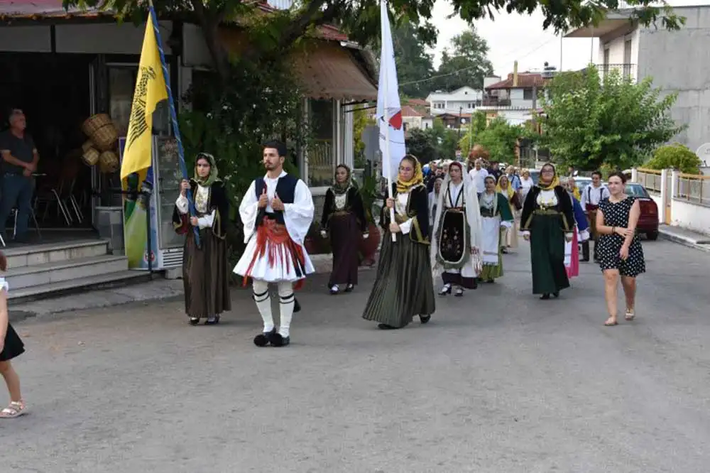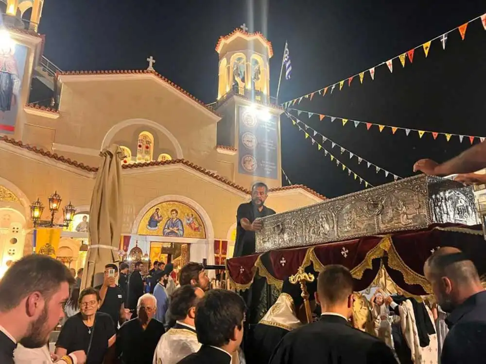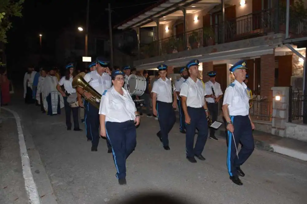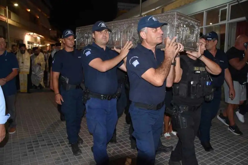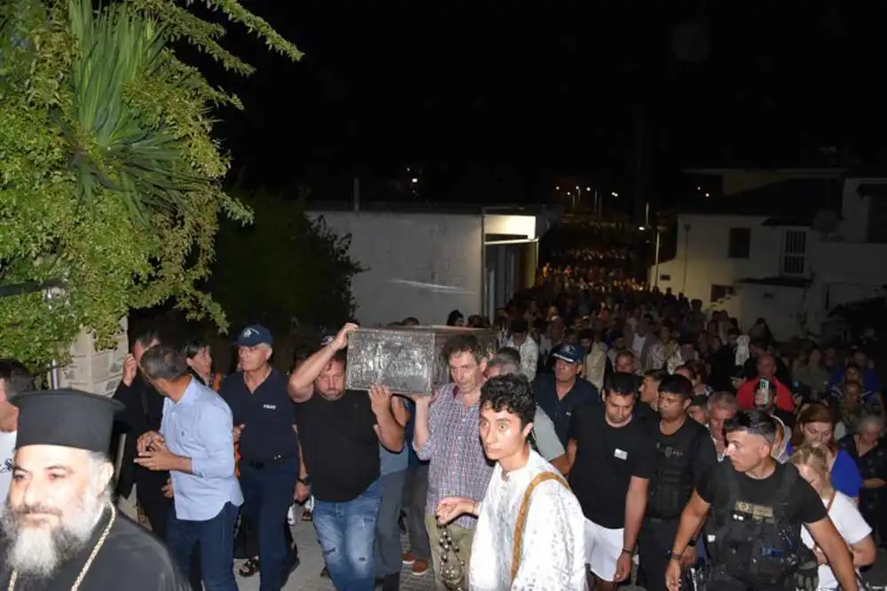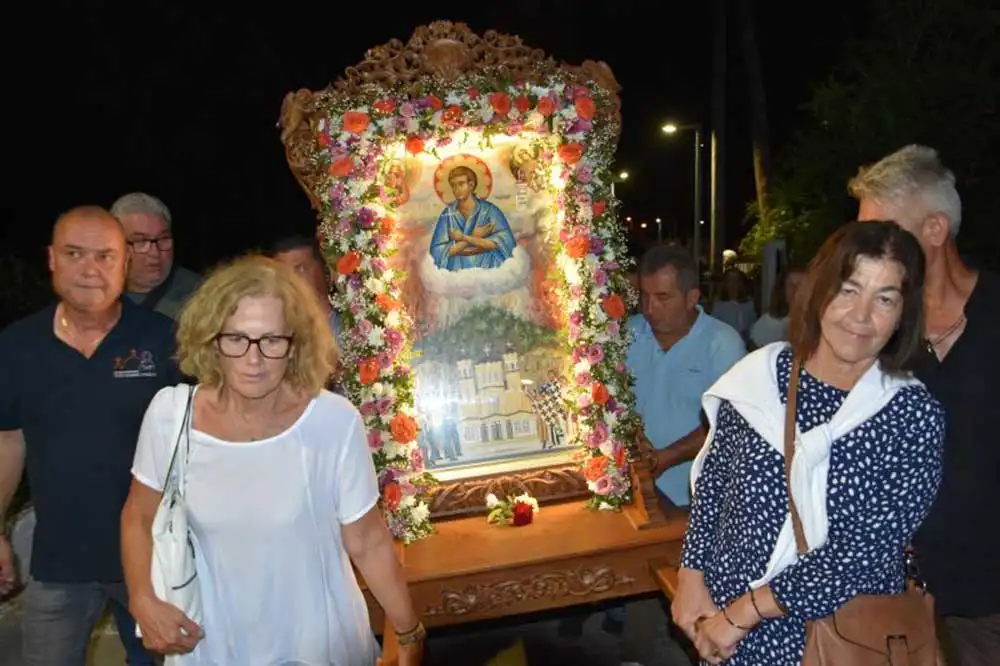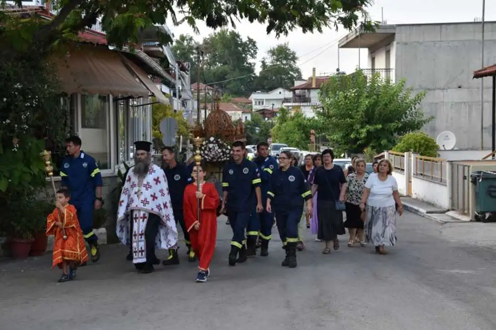 Λίγο πριν τον Εσπερινό, μεταφέρθηκε στον Ι. Ναό του Οσίου Ιωάννου, εν πομπή, η εφέστιος ιερά εικόνα των Αγίων Κωνσταντίνου και Ελένης, προστατών της Ενορίας του Προκοπίου, αφού, υπό την απειλή της πυρκαγιάς συλλειτανεύθηκαν τα ιερά εικονίσματα των Ισαποστόλων βασιλέων και του Οσίου Ιωάννου.