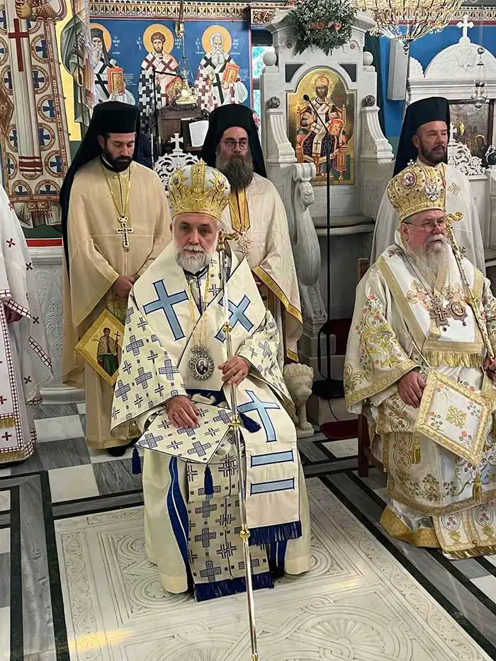 Στον Εσπερινό χοροστάτησε ο Σεβασμιώτατος Μητροπολίτης Περιστερίου κ. Γρηγόριος, συγχοροστατούντων των Σεβασμιωτάτων Μητροπολιτών Θεσσαλιώτιδος και Φαναριοφερσάλων κ. Τιμοθέου, Φιλίππων, Νεαπόλεως και Θάσου κ. Στεφάνου, του Θεοφιλεστάτου Επισκόπου Σκοπέλου κ. Νικοδήμου και του Σεβασμιωτάτου Ποιμενάρχου μας, Μητροπολίτου Χαλκίδος κ. Χρυσοστόμου, με τη συμμετοχή Κληρικών από τη Χαλκίδα, την Β. Εύβοια, αλλά και παρεπιδήμους.