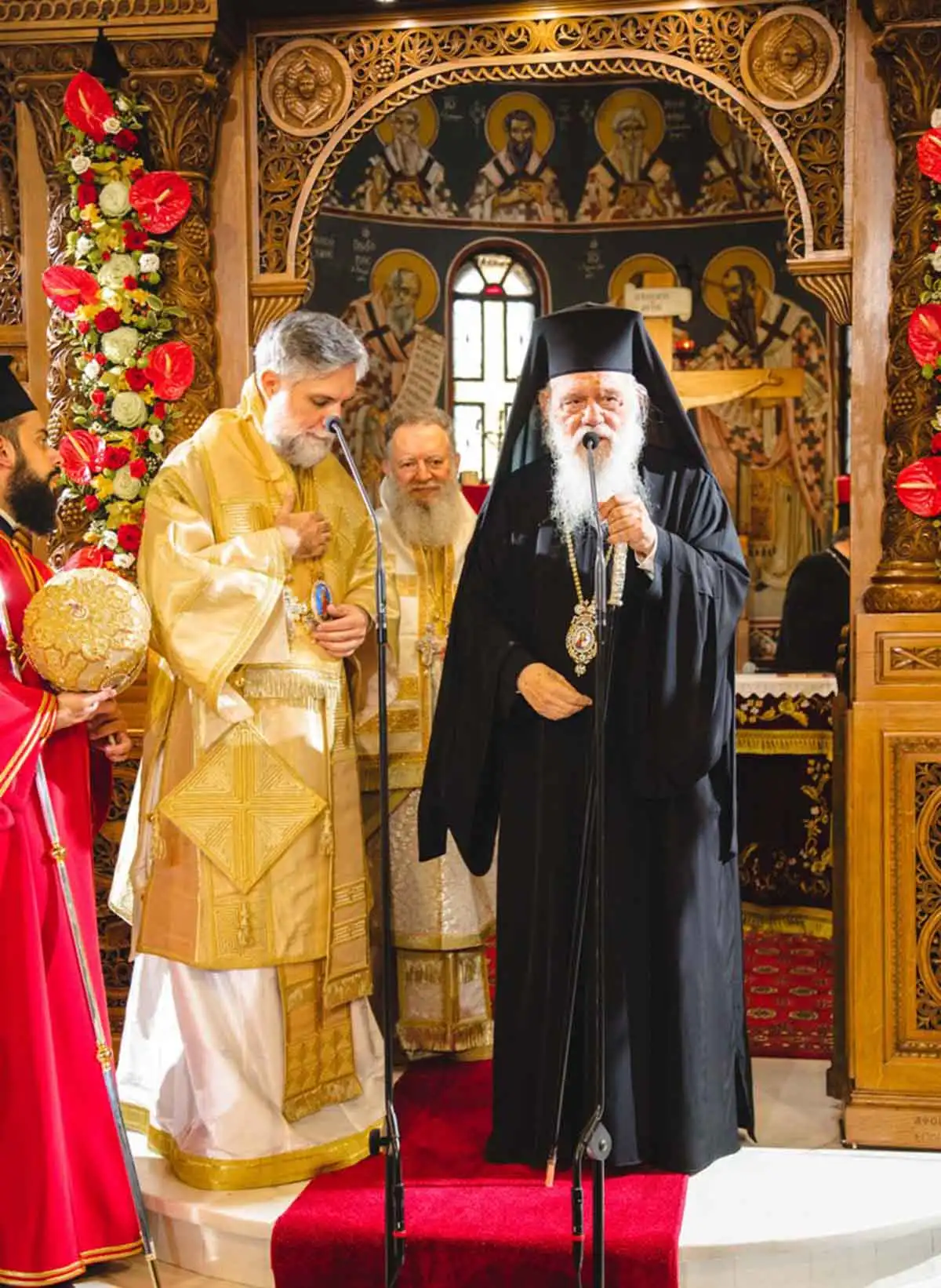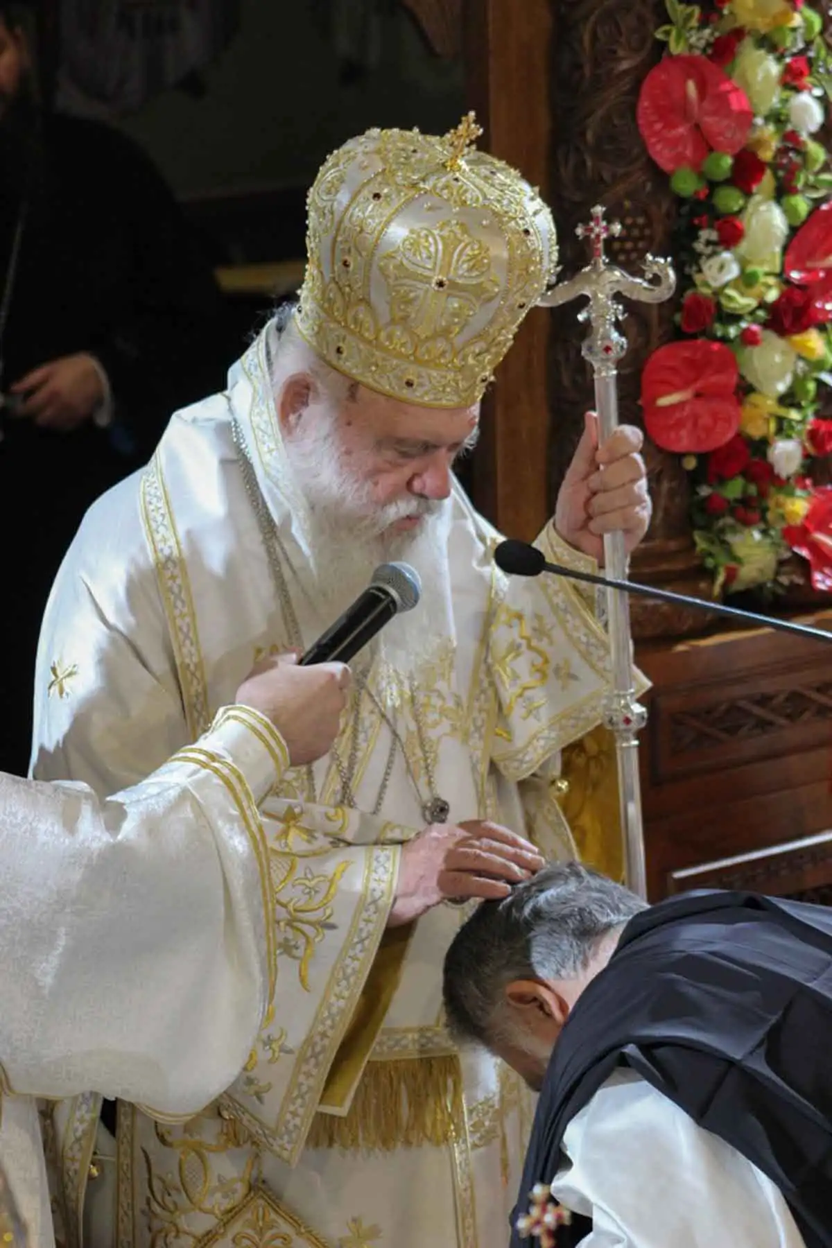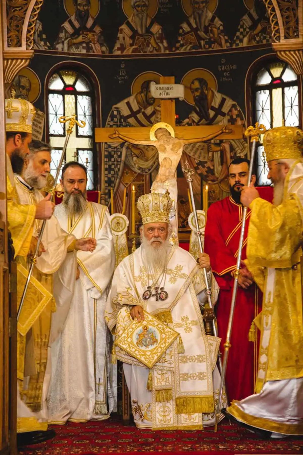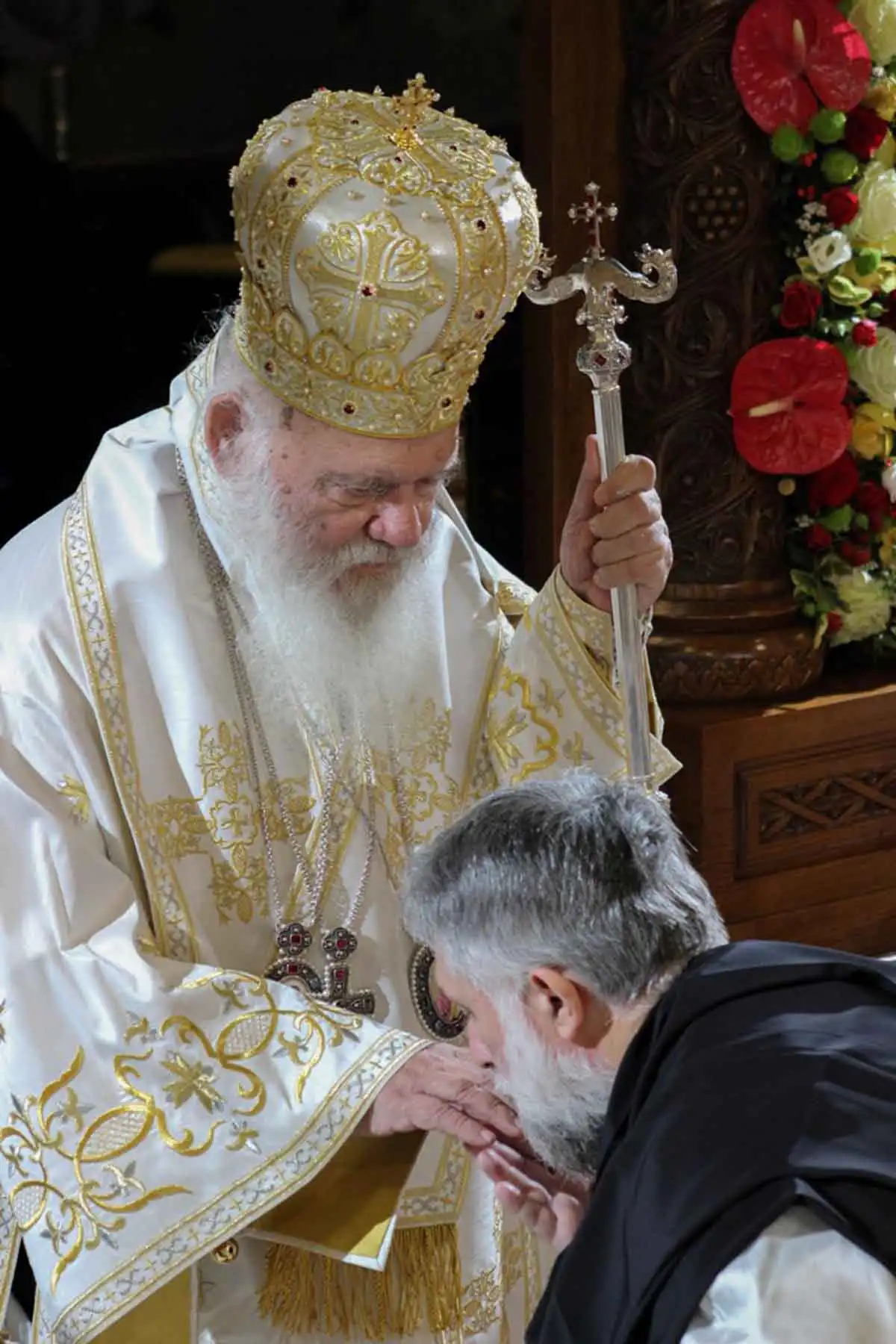 Ετύγχανε, Μακαριώτατε, όσες φορές είχα ως ιερεύς συλλειτουργήσει μαζί Σας, να αναλαμβάνετε υπό των ταπεινών μου χειρών στους στιβαρούς ώμους σας κατά την Μεγάλη Είσοδο το αρχιερατικό ωμοφόριο. Και σήμερα συμβαίνει το αντίστροφο· εσείς θέτετε επί των δικών μου αδυνάμων ώμων τον ζυγό του αρχιερατικού ωμόφορου, και έτσι επωμίζομαι πλέον κι εγώ την επιπρόσθετη ευθύνη μιας ανόθευτης παραδόσεως αιώνων.