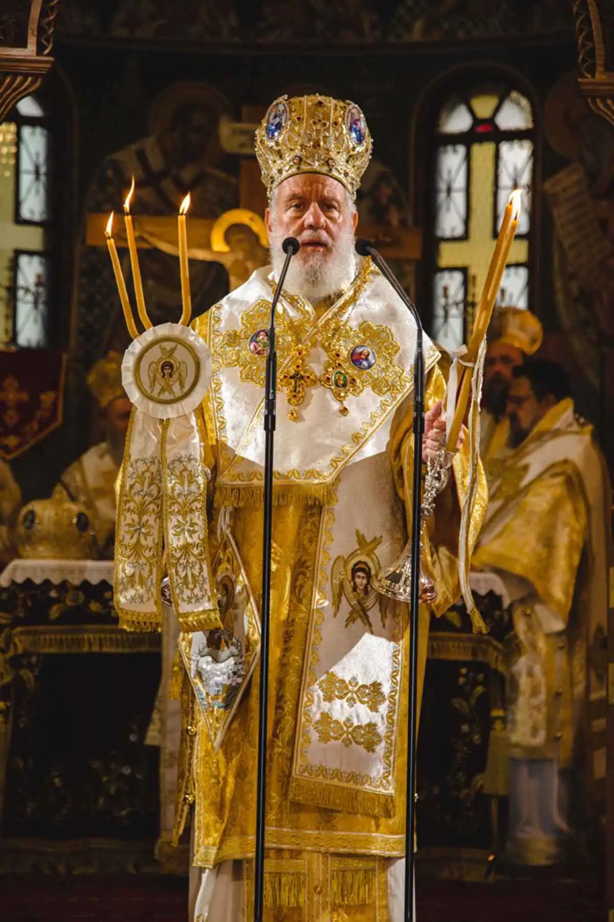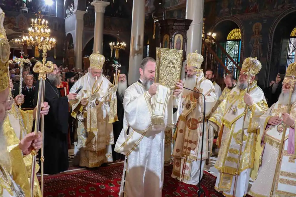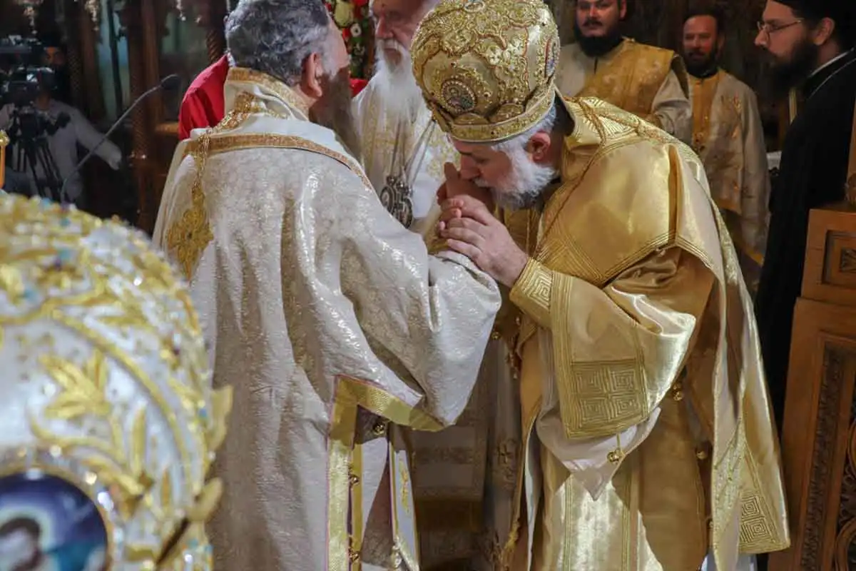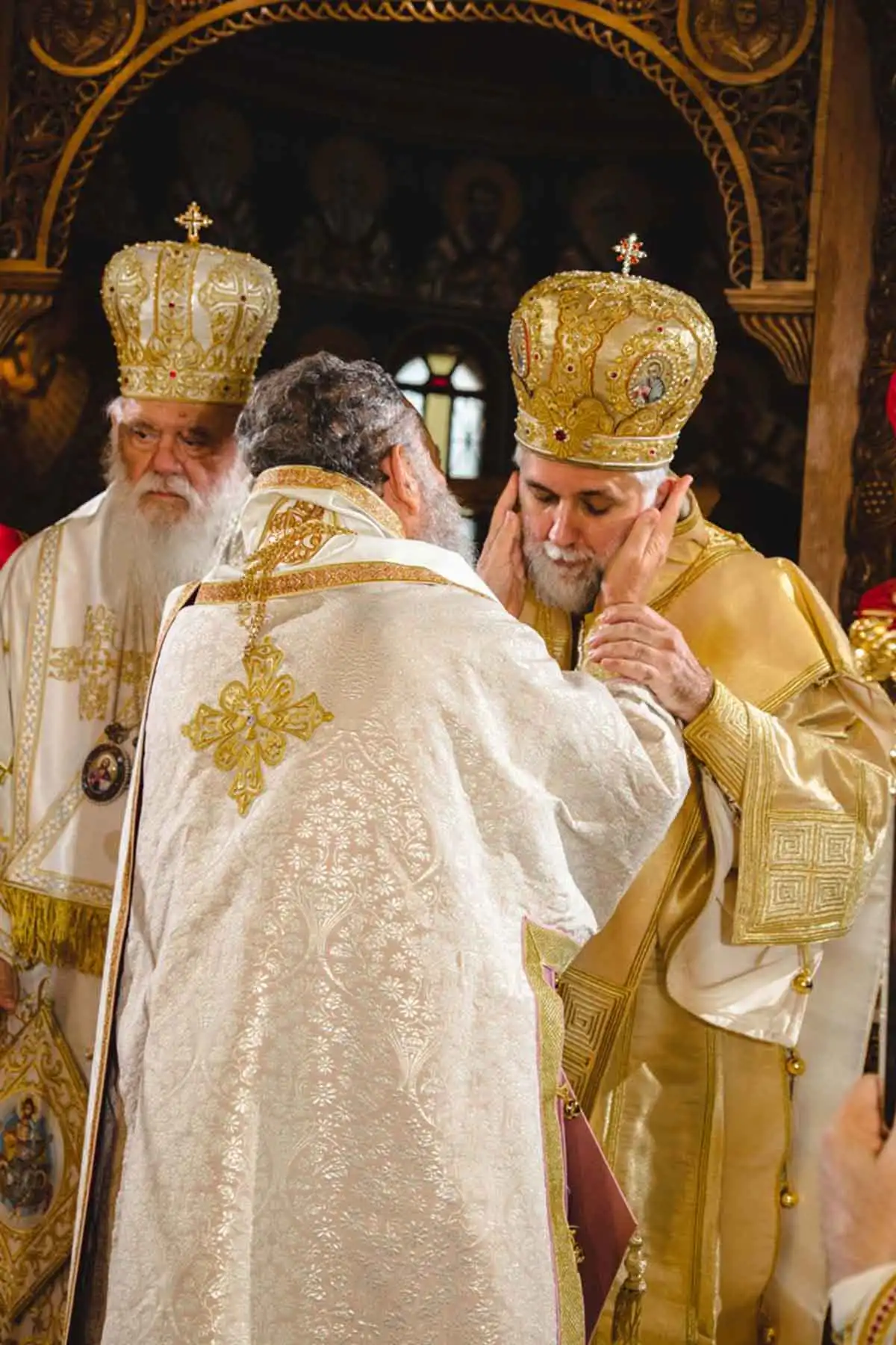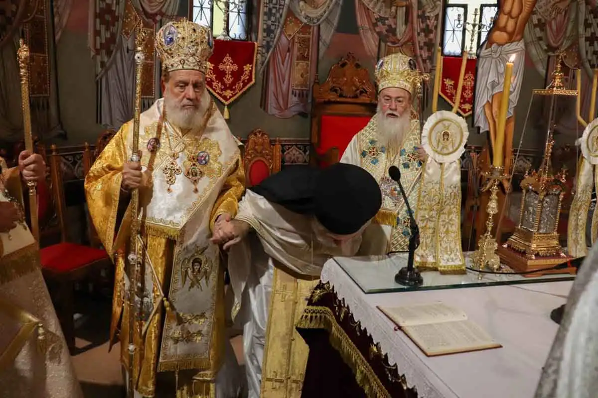 Ετύγχανε, Μακαριώτατε, όσες φορές είχα ως ιερεύς συλλειτουργήσει μαζί Σας, να αναλαμβάνετε υπό των ταπεινών μου χειρών στους στιβαρούς ώμους σας κατά την Μεγάλη Είσοδο το αρχιερατικό ωμοφόριο. Και σήμερα συμβαίνει το αντίστροφο· εσείς θέτετε επί των δικών μου αδυνάμων ώμων τον ζυγό του αρχιερατικού ωμόφορου, και έτσι επωμίζομαι πλέον κι εγώ την επιπρόσθετη ευθύνη μιας ανόθευτης παραδόσεως αιώνων.