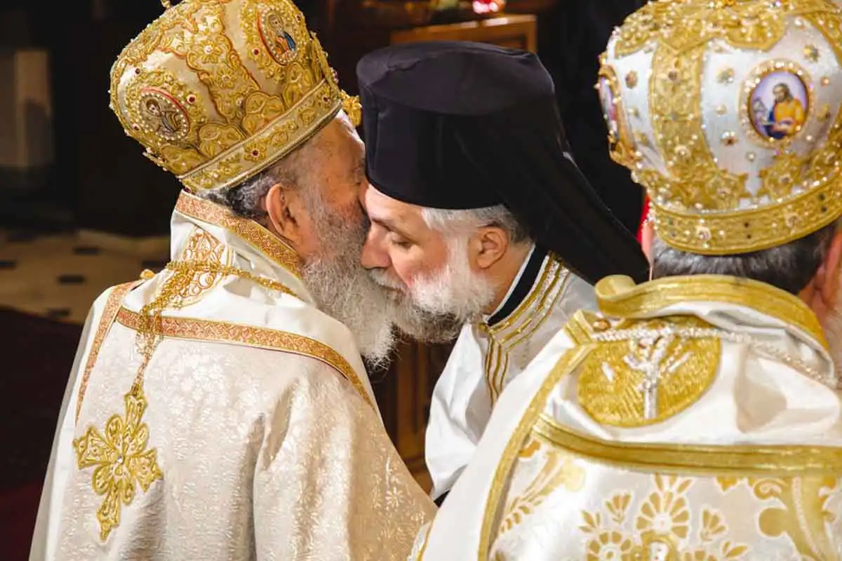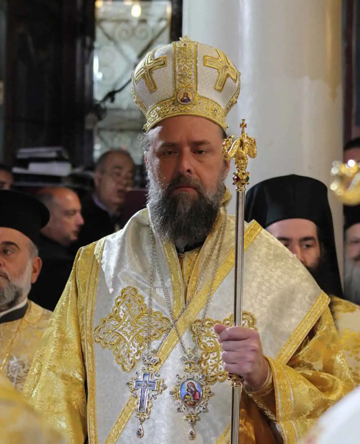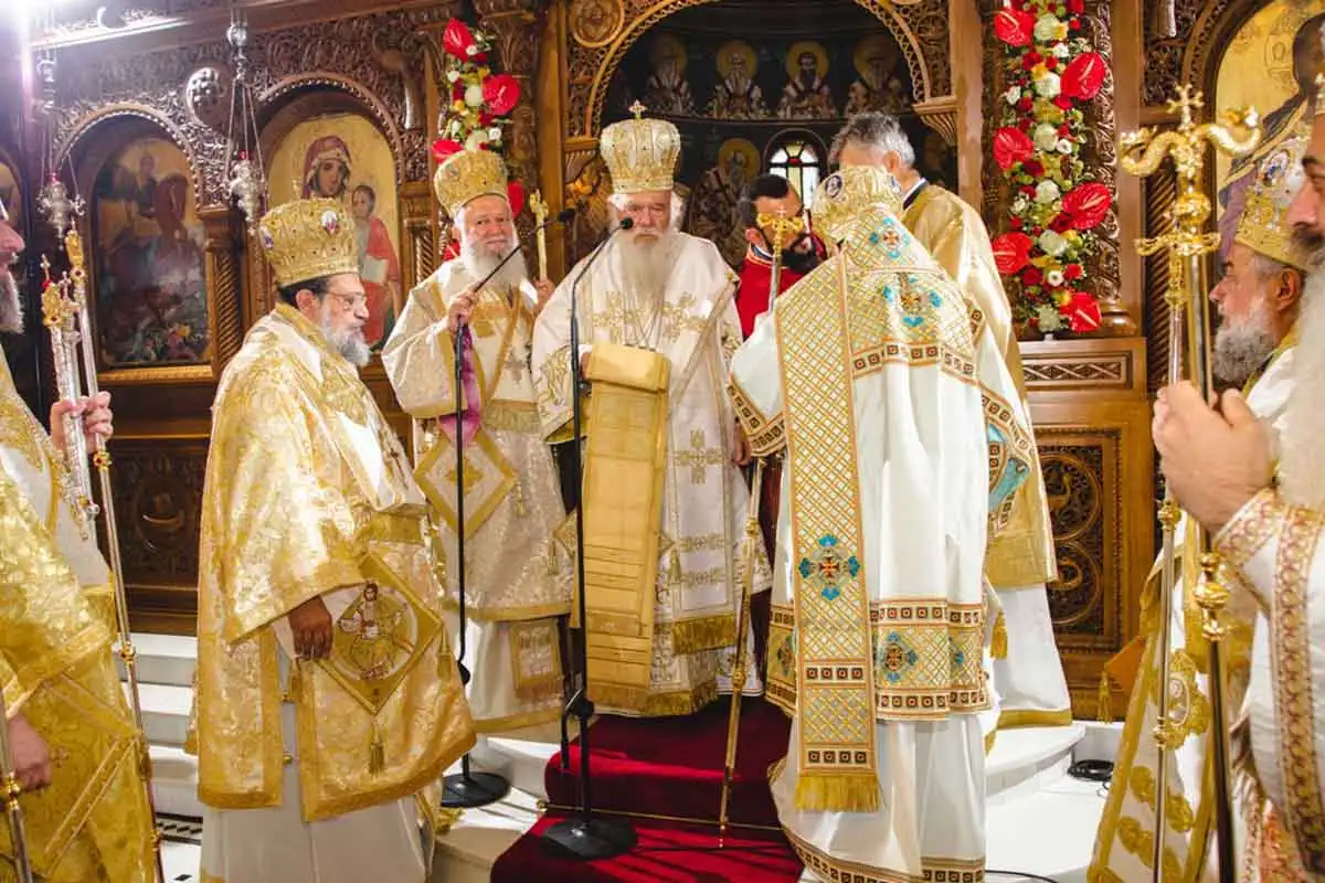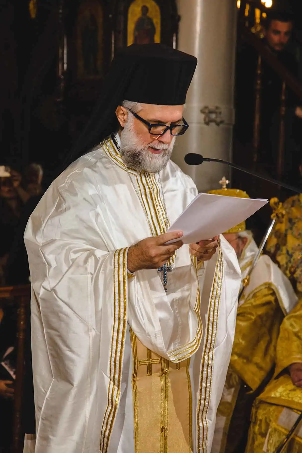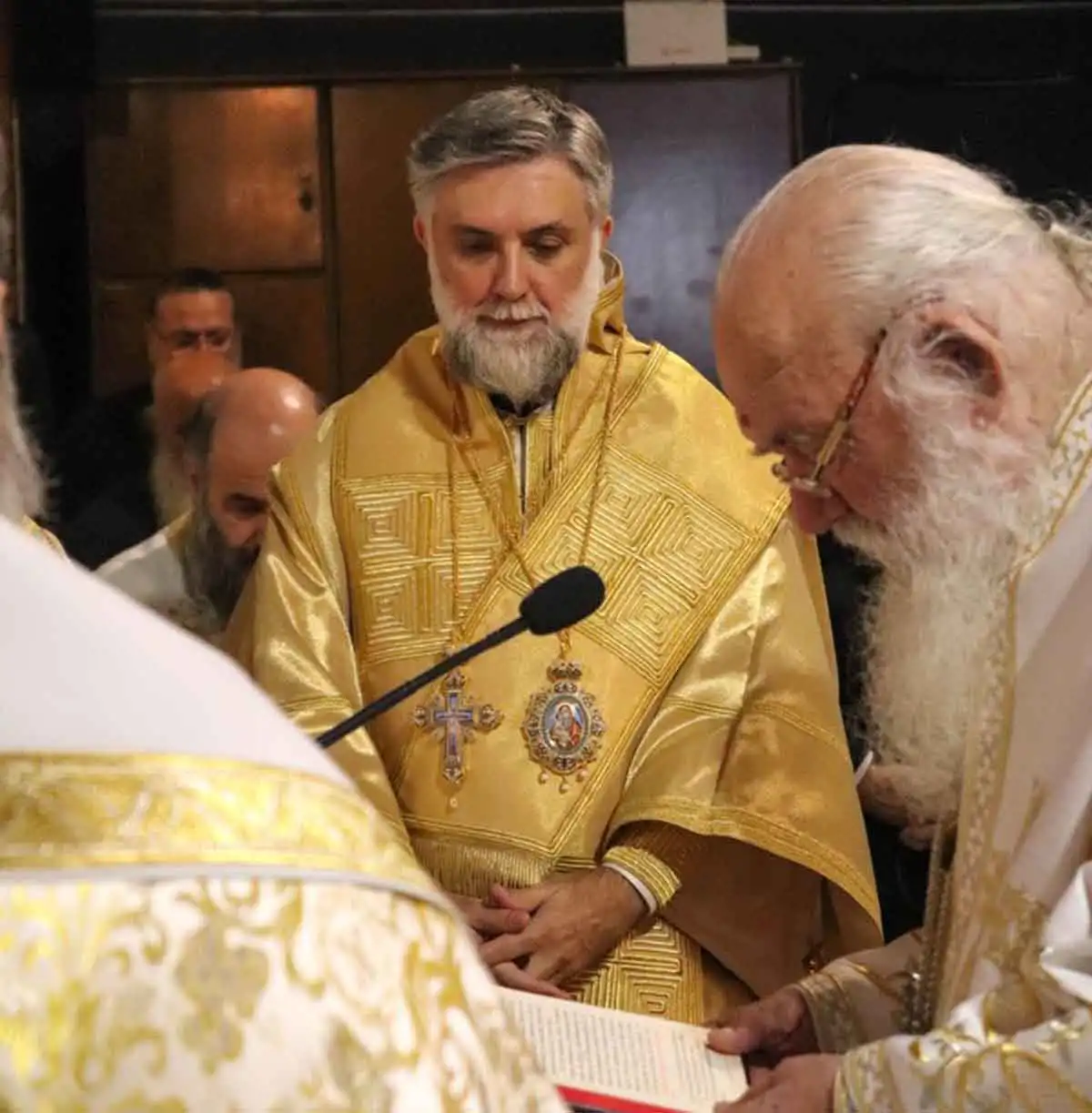 Αποδίδω συμβολικώς τα οφειλόμενα στον εκ της δικαιοδοσίας του Πατριαρχείου Αντιοχείας προσελθόντα, λίαν τιμητικώς, σεβάσμιο Ιεράρχη Αρεθουσίων κ. Ηλία, διά του οποίου ομολογείται κανονικώς η ενότης της πίστεως και η κοινωνία του Αγίου Πνεύματος, και προς τον οποίον υποβάλλονται θερμότατες ευχαριστίες για τον υπερβάλλοντα κόπο στον οποίον υπεβλήθη να ταξιδέψει από τη μακρινή Βενεζουέλα.