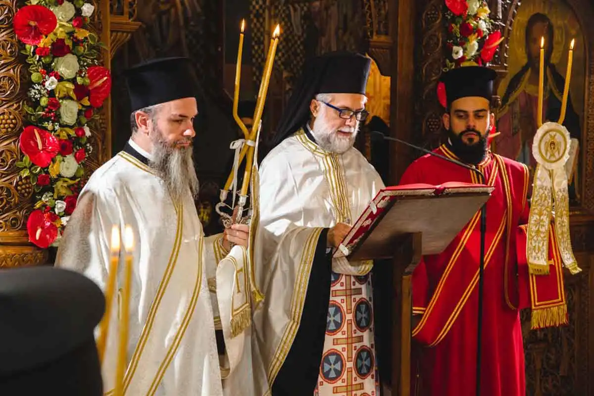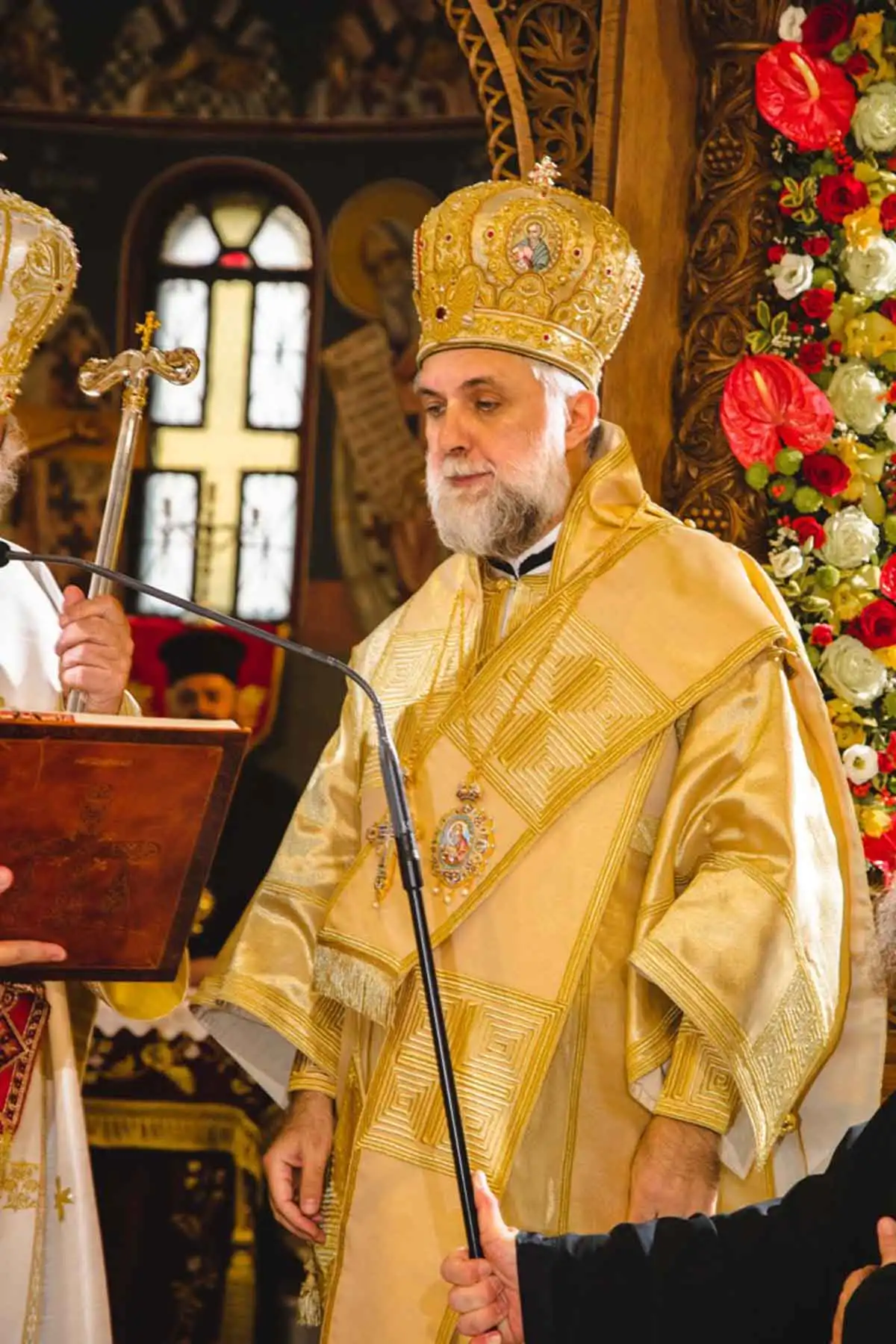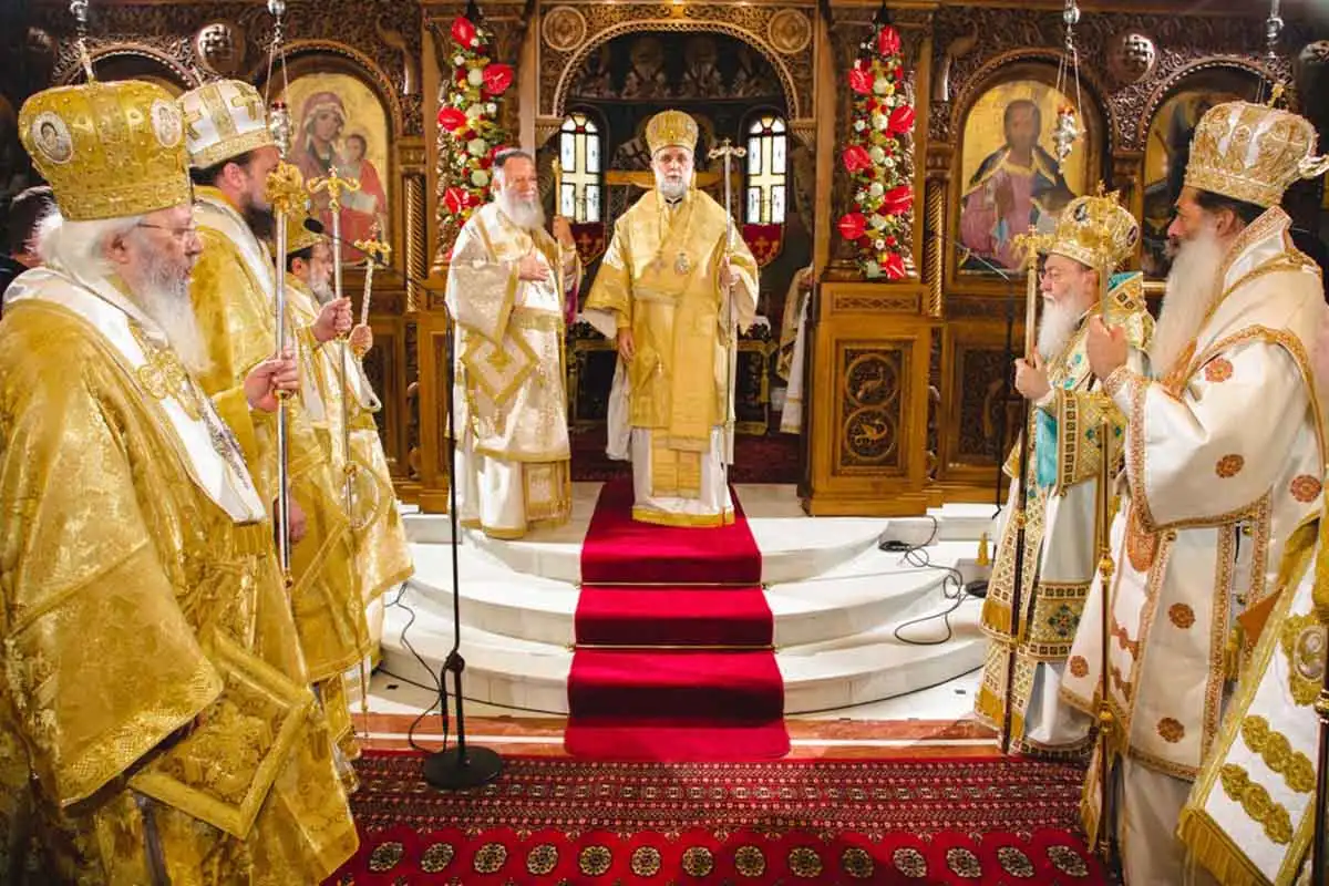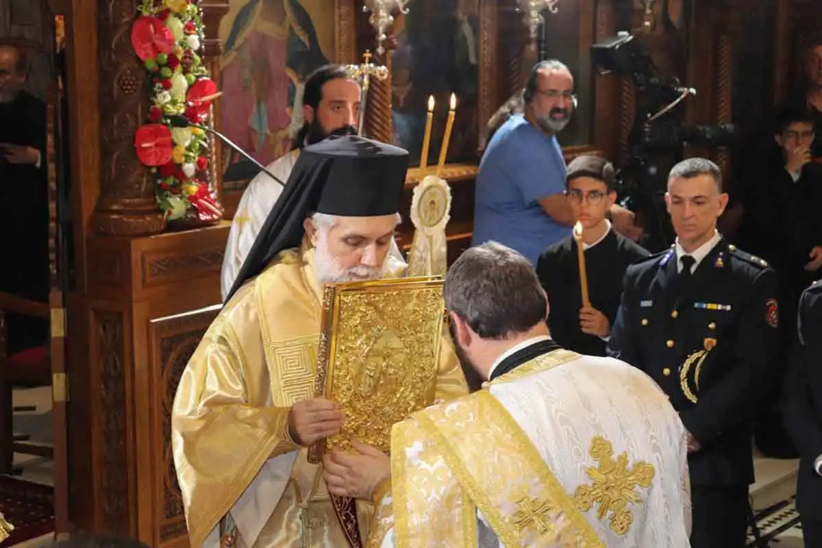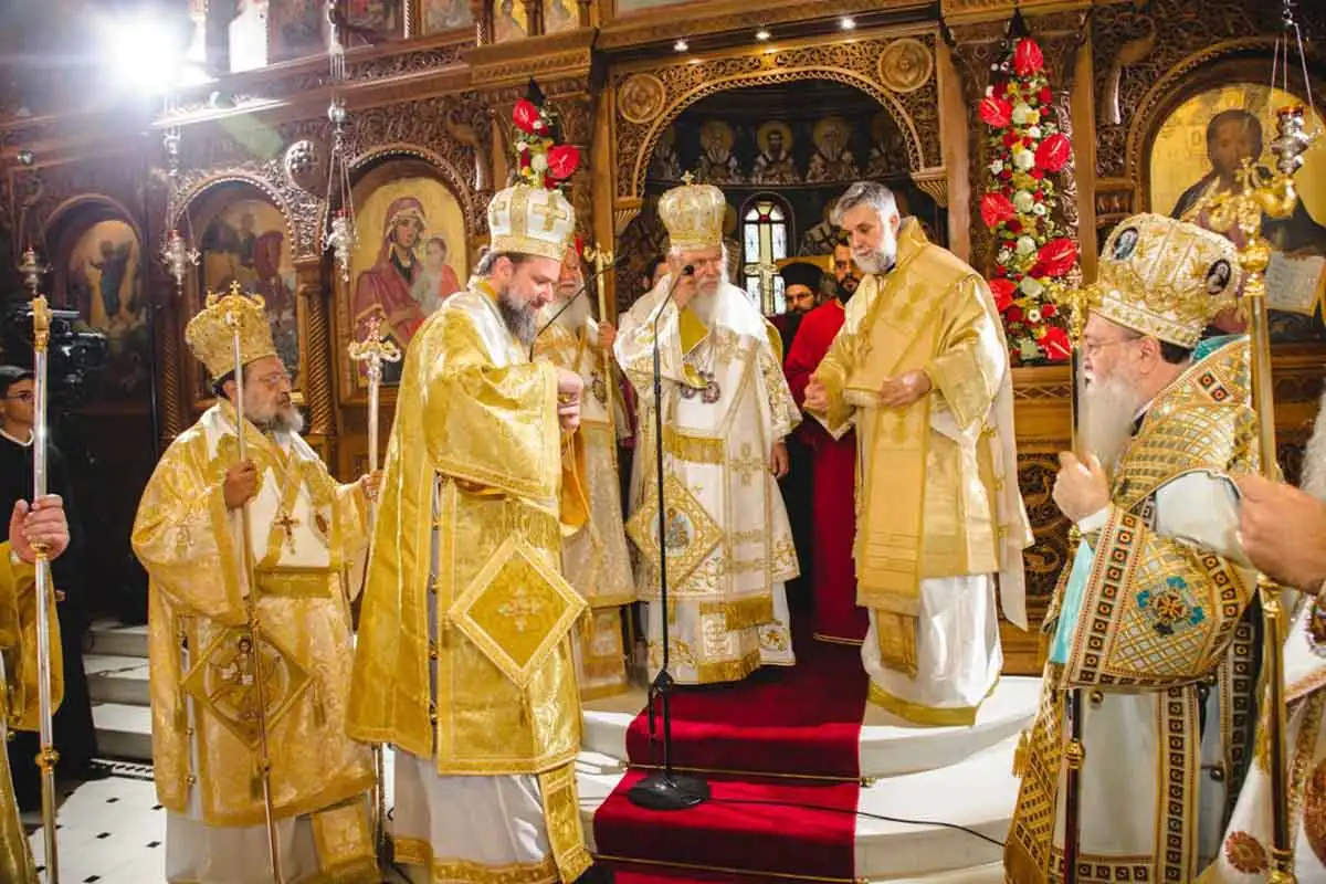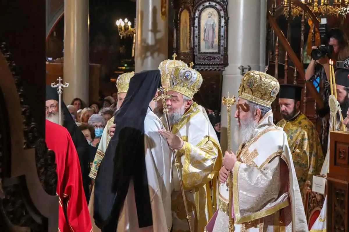 Αποδίδω συμβολικώς τα οφειλόμενα στον εκ της δικαιοδοσίας του Πατριαρχείου Αντιοχείας προσελθόντα, λίαν τιμητικώς, σεβάσμιο Ιεράρχη Αρεθουσίων κ. Ηλία, διά του οποίου ομολογείται κανονικώς η ενότης της πίστεως και η κοινωνία του Αγίου Πνεύματος, και προς τον οποίον υποβάλλονται θερμότατες ευχαριστίες για τον υπερβάλλοντα κόπο στον οποίον υπεβλήθη να ταξιδέψει από τη μακρινή Βενεζουέλα.