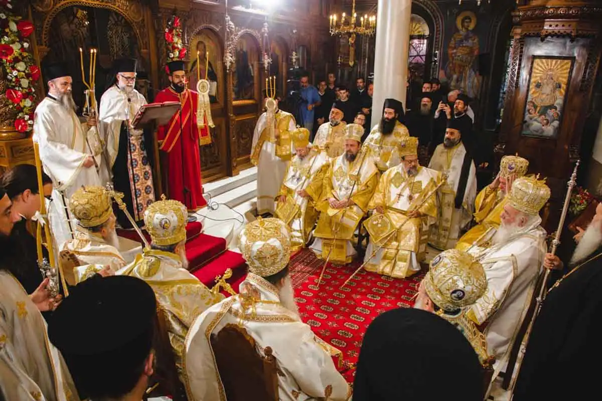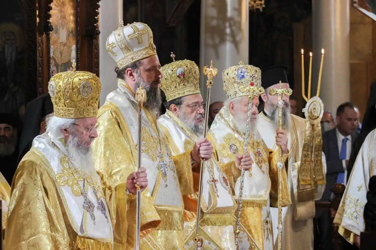 Συλλειτουργοί του Μακαριωτάτου ήταν οι Σεβασμιώτατοι Μητροπολίτες Σύρου κ. Δωρόθεος, Κορίνθου κ. Διονύσιος, Μεσσηνίας κ. Χρυσόστομος, Φθιώτιδος κ. Συμεών, Θεσσαλονίκης κ. Φιλόθεος, Γόρτυνος κ. Νικηφόρος Φαναρίου κ. Αγαθάγγελος και ο οικείος Ποιμενάρχης, Χαλκίδος κ. Χρυσόστομος.
