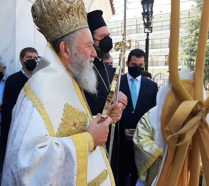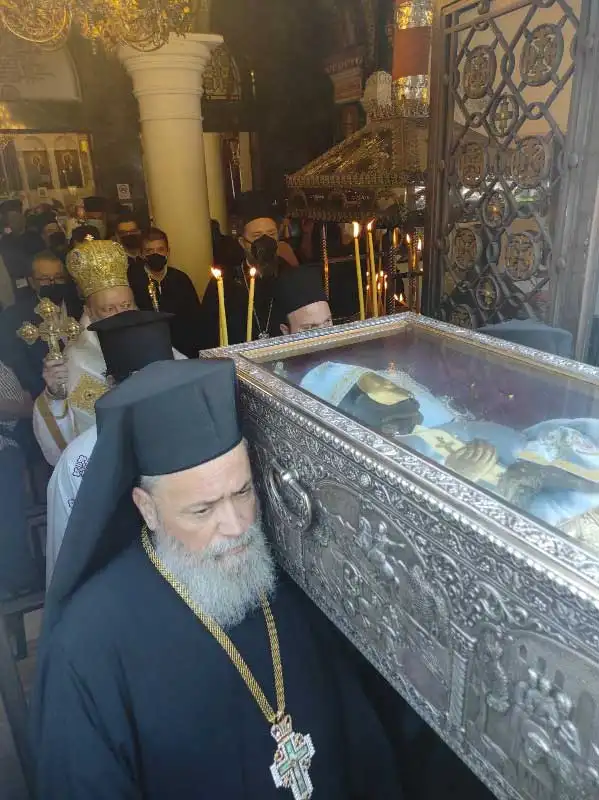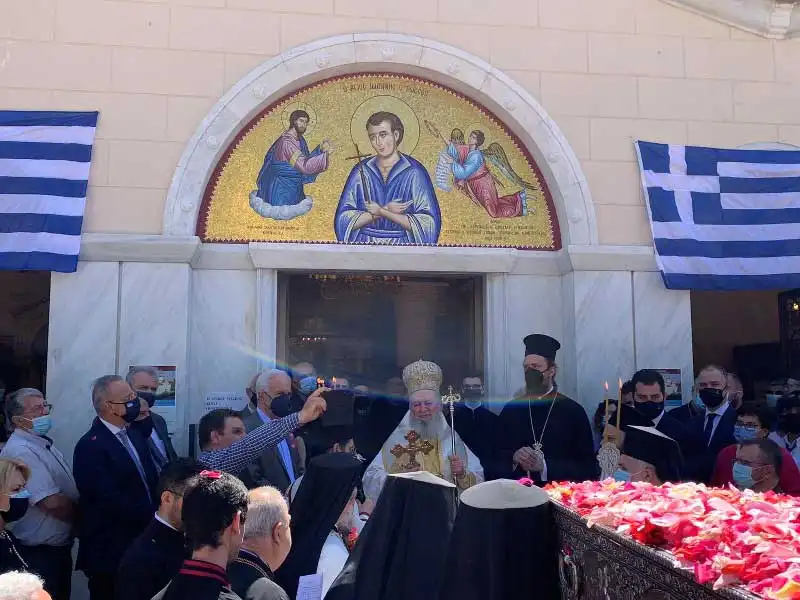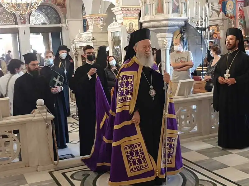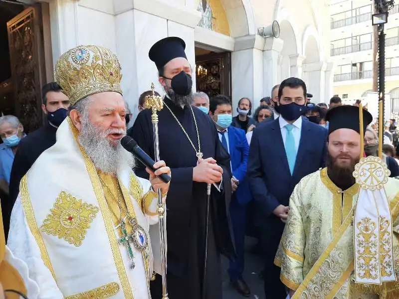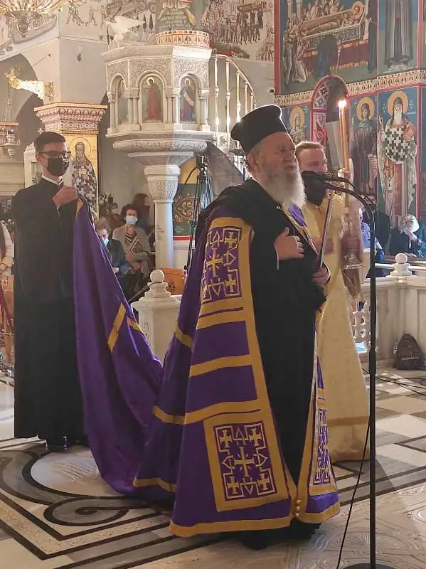 Μετά τη Θεία Λειτουργία, αν και η καθιερωμένη λιτανεία δεν έλαβε χώρα λόγω των υγειονομικών απαγορεύσεων, πραγματοποιήθηκε δέηση υπέρ της καταστολής της πανδημίας και ο Σεβασμιώτατος, συνευχομένου και του Θεοφιλεστάτου Επισκόπου Ωρεών κ. Φιλοθέου, ανέγνωσε την σχετική ευχή, ποίημα του Σεβασμιωτάτου Μητροπολίτου Εδέσσης, Πέλλης και Αλμωπίας κ. Ιωήλ.