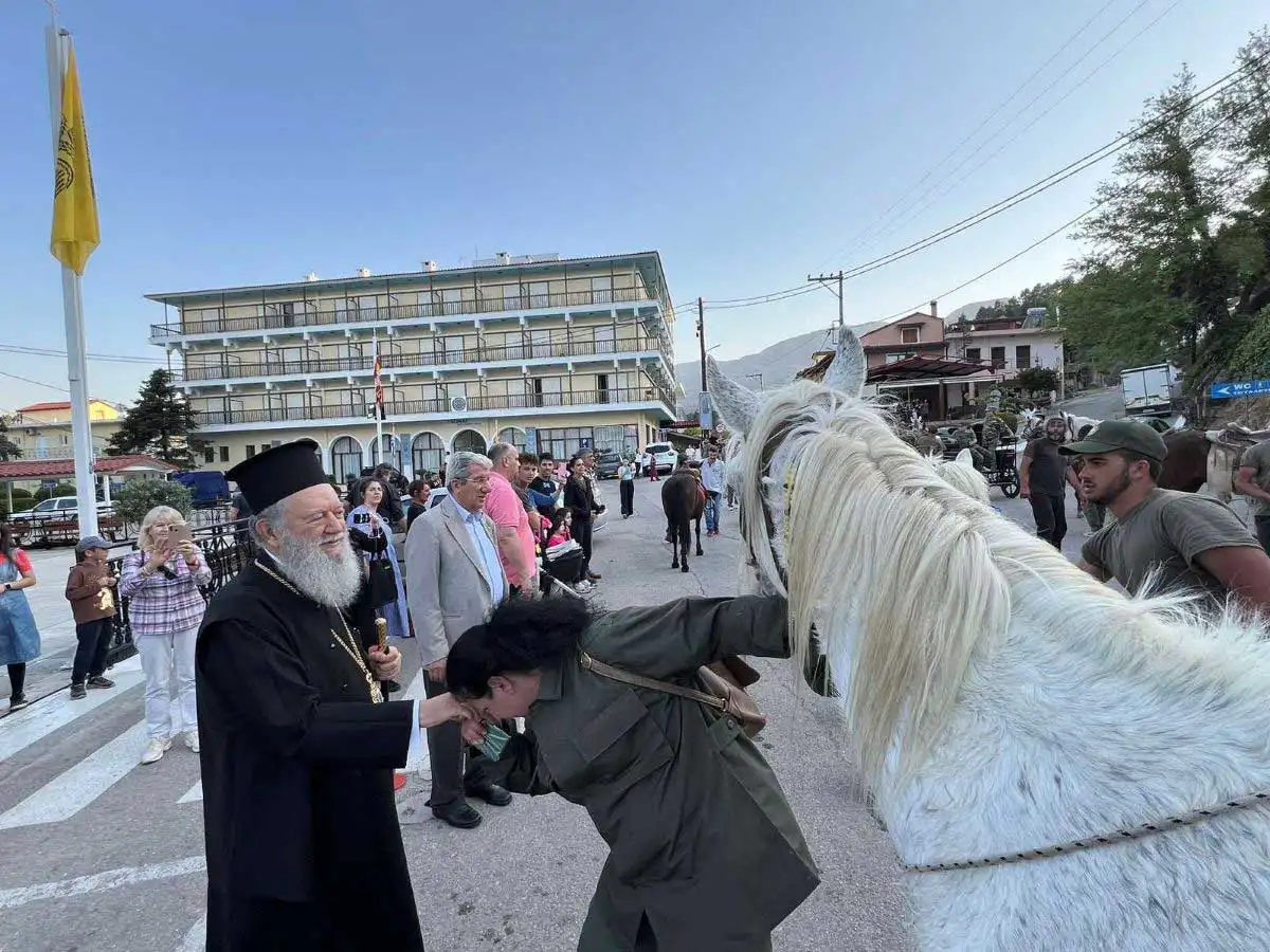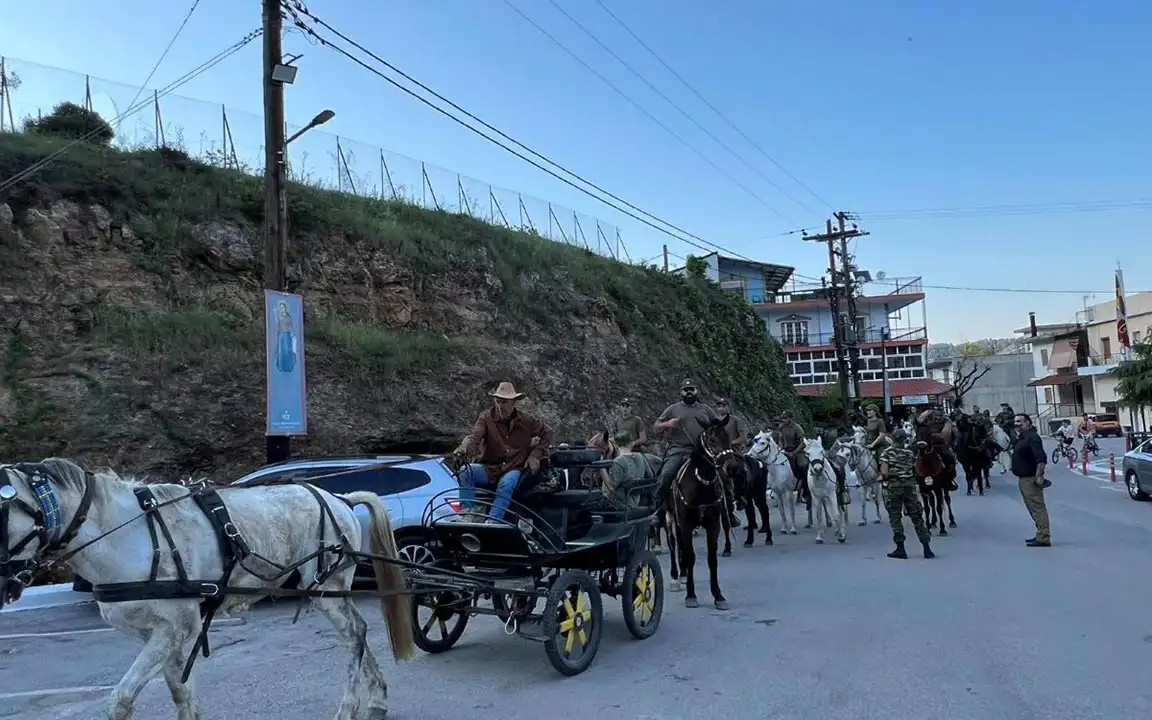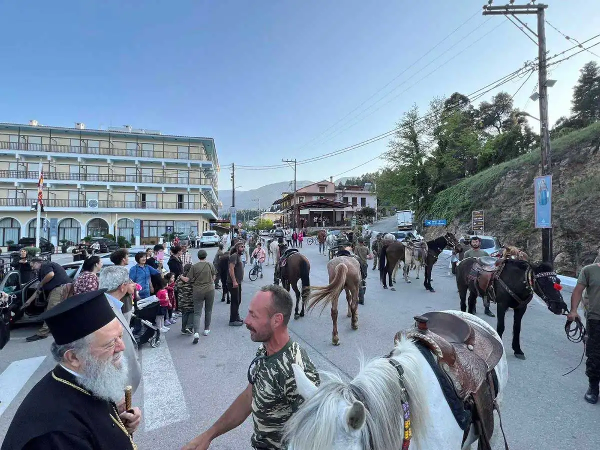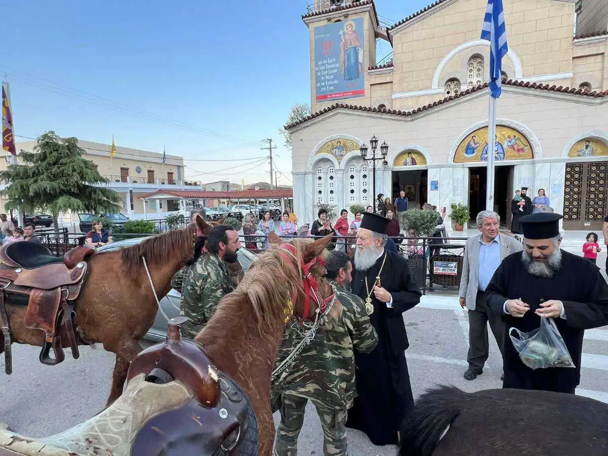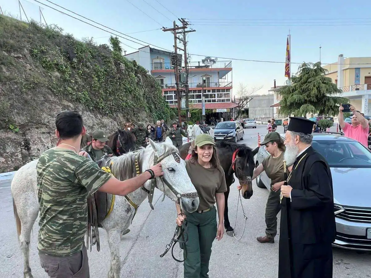 Περισσότεροι από 20 ιππείς, άνδρες και γυναίκες, ξεκίνησαν από τα Ήλια της Β. Ευβοίας, διένυσαν απόσταση μεγαλύτερη των εβδομήντα χιλιομέτρων και κατέφθασαν, ως προσκυνητές στον Όσιο Ιωάννη.