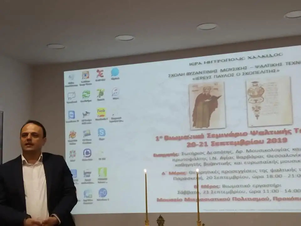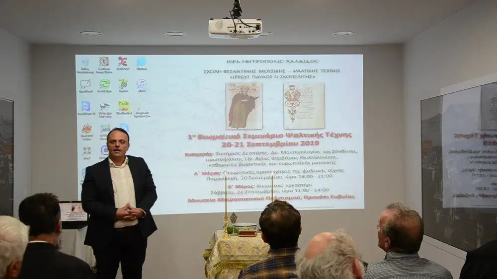 Το Σεμινάριο έλαβε χώρα στη φιλόξενη συνεδριακή αίθουσα του Μουσείου Μικρασιατικού Πολιτισμού στο Νέο Προκόπιο Ευβοίας και εισηγητής ήταν ο κ. Σωτήριος Δεσπότης, δρ Μουσικολογίας, συνθέτης και Πρωτοψάλτης του Ι.Ν. Αγίας Βαρβάρας Τούμπας Θεσσαλονίκης.