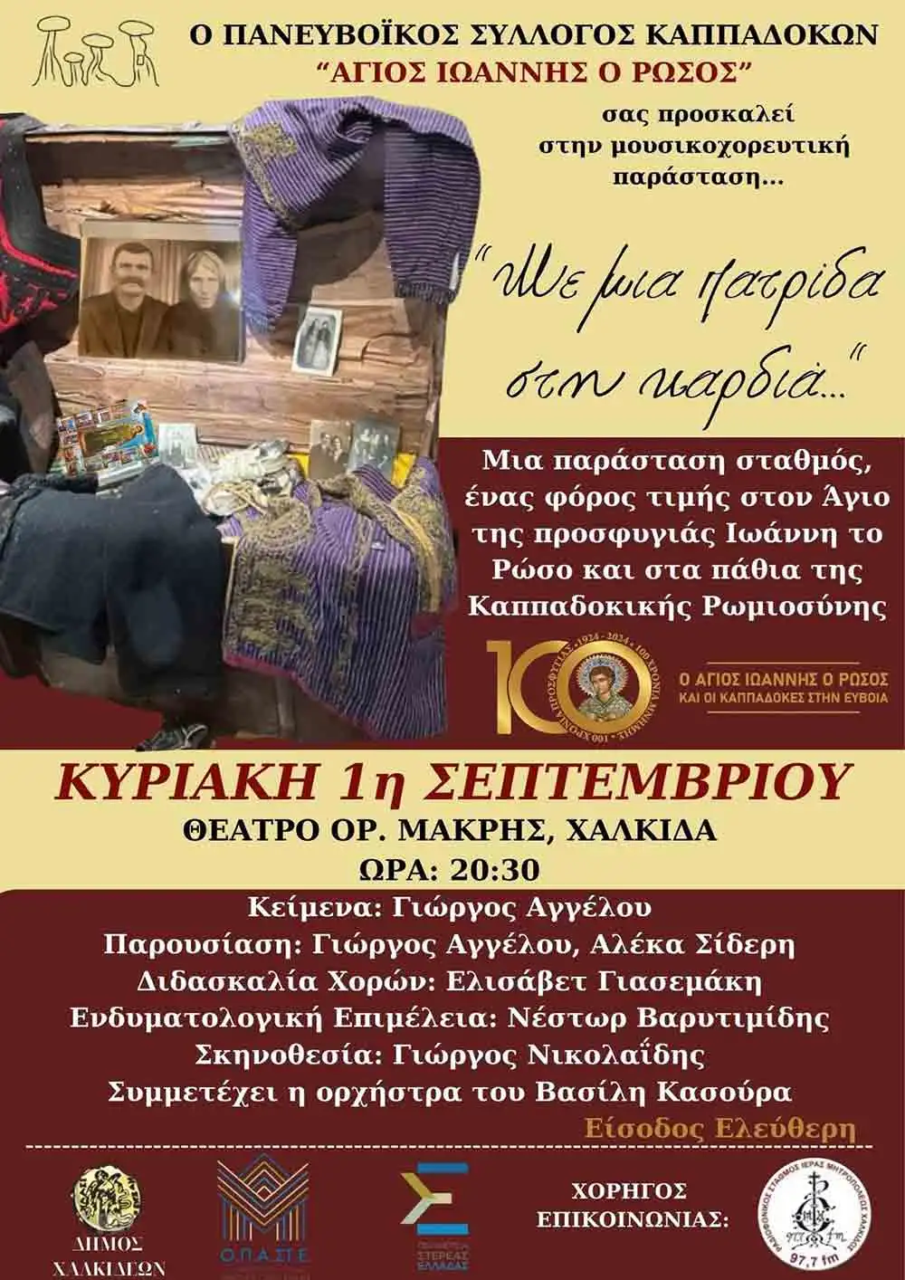 Μια επετειακή χοροθεατρική παράσταση με αφορμή τα 100 χρόνια από την έλευση του Αγίου Ιωάννου του Ρώσου και των Καππαδοκών στην Εύβοια.