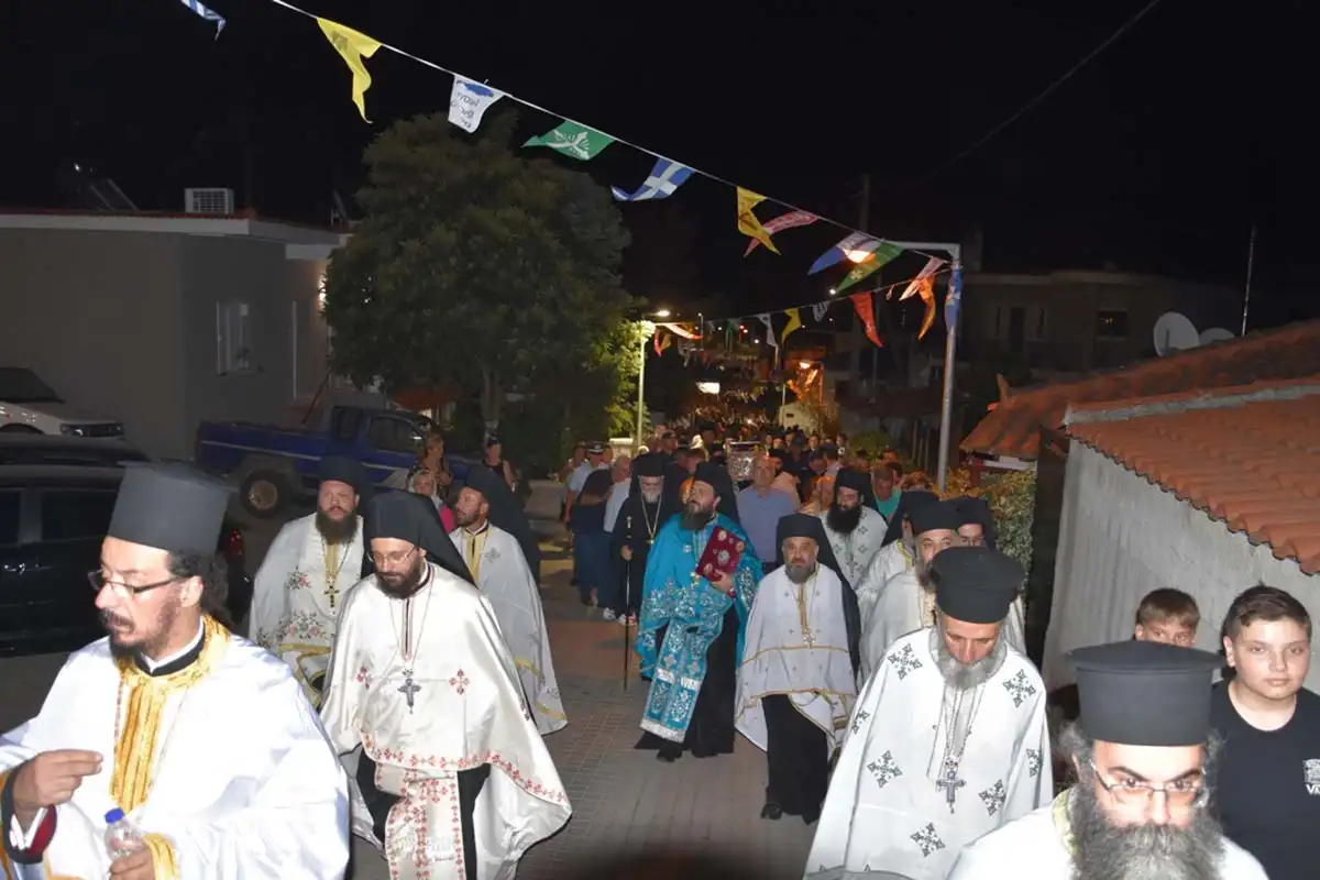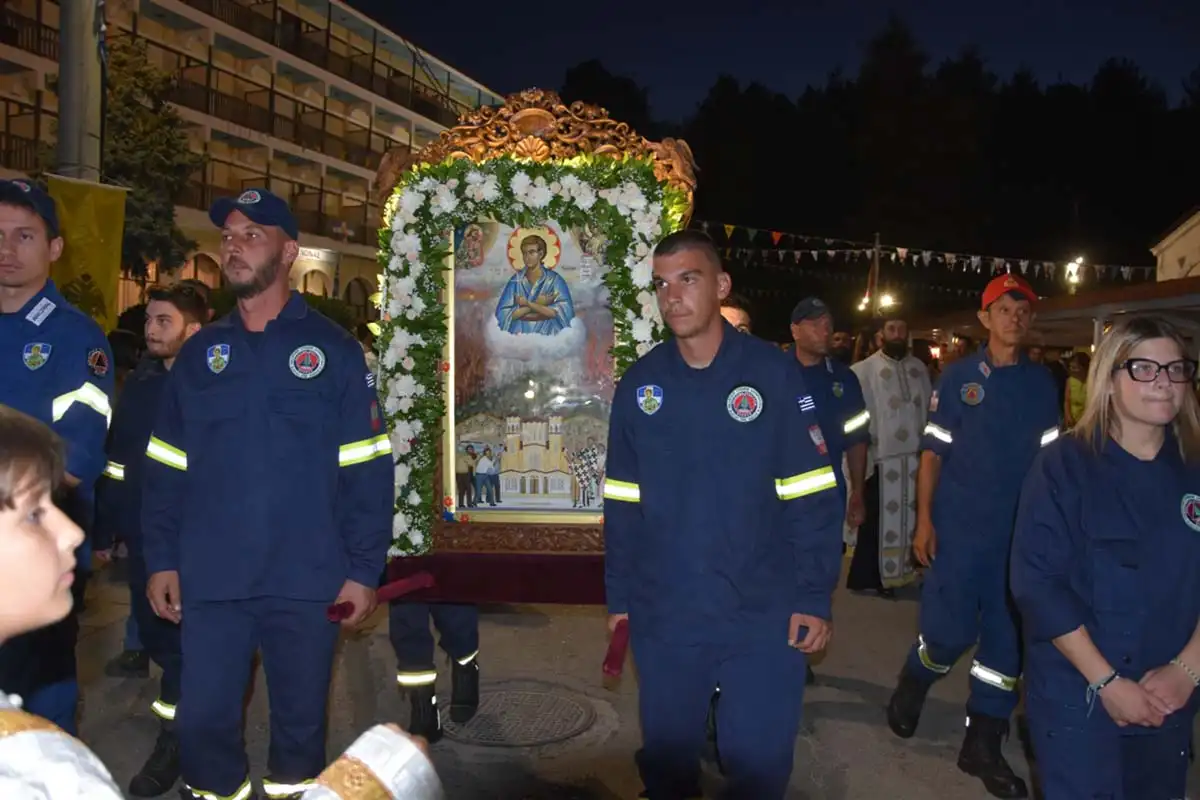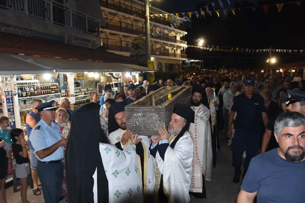 Μετά τον Εσπερινό πραγματοποιήθηκε, με πολυπληθέστατη συμμετοχή ευσεβών προσκυνητών, της Φιλαρμονικής του Δήμου Χαλκιδέων, τμημάτων πολιτιστικών συλλόγων και σύσσωμου του Συλλόγου Εθελοντικών Δυνάμεων Δασοπροστασίας και Διάσωσης Προκοπίου Ευβοίας, η λιτάνευση του αφθάρτου σκηνώματος του Οσίου Ιωάννου και της ι. εικόνος των Αγίων Κωνσταντίνου και Ελένης, όπως έπραξαν τον Αύγουστο του 2021, υπό την απειλή της πύρινης λαίλαπας, οι δύο Ιερείς, ο μακαριστός πρωθιερέας του Ι. Προσκυνήματος, Πρωτοπρεσβ. Νικόλαος Βερνέζος και ο Εφημέριος της Ενορίας Αγίων Κωνσταντίνου και Ελένης, Οικον. (νυν Πρωτοπρεσβύτερος) Δημήτριος Πατεράκης μαζί με τα μέλη του Συλλόγου Εθελοντικών Δυνάμεων Δασοπροστασίας και Διάσωσης Προκοπίου και τους εναπομείναντες άνδρες εθελοντές υπερασπιστές της κωμοπόλεως, μετά την εκκένωση του Προκοπίου κατά την συμβουλή της Πολιτικής Προστασίας.