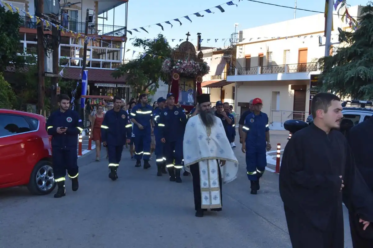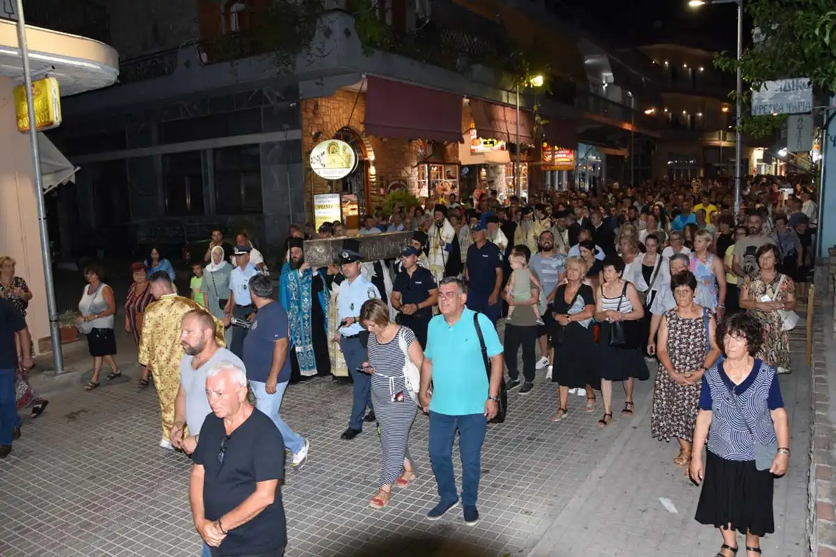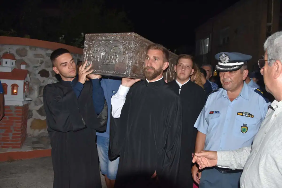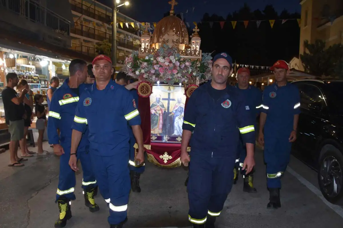 Μετά τον Εσπερινό πραγματοποιήθηκε, με πολυπληθέστατη συμμετοχή ευσεβών προσκυνητών, της Φιλαρμονικής του Δήμου Χαλκιδέων, τμημάτων πολιτιστικών συλλόγων και σύσσωμου του Συλλόγου Εθελοντικών Δυνάμεων Δασοπροστασίας και Διάσωσης Προκοπίου Ευβοίας, η λιτάνευση του αφθάρτου σκηνώματος του Οσίου Ιωάννου και της ι. εικόνος των Αγίων Κωνσταντίνου και Ελένης, όπως έπραξαν τον Αύγουστο του 2021, υπό την απειλή της πύρινης λαίλαπας, οι δύο Ιερείς, ο μακαριστός πρωθιερέας του Ι. Προσκυνήματος, Πρωτοπρεσβ. Νικόλαος Βερνέζος και ο Εφημέριος της Ενορίας Αγίων Κωνσταντίνου και Ελένης, Οικον. (νυν Πρωτοπρεσβύτερος) Δημήτριος Πατεράκης μαζί με τα μέλη του Συλλόγου Εθελοντικών Δυνάμεων Δασοπροστασίας και Διάσωσης Προκοπίου και τους εναπομείναντες άνδρες εθελοντές υπερασπιστές της κωμοπόλεως, μετά την εκκένωση του Προκοπίου κατά την συμβουλή της Πολιτικής Προστασίας.