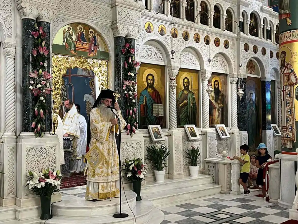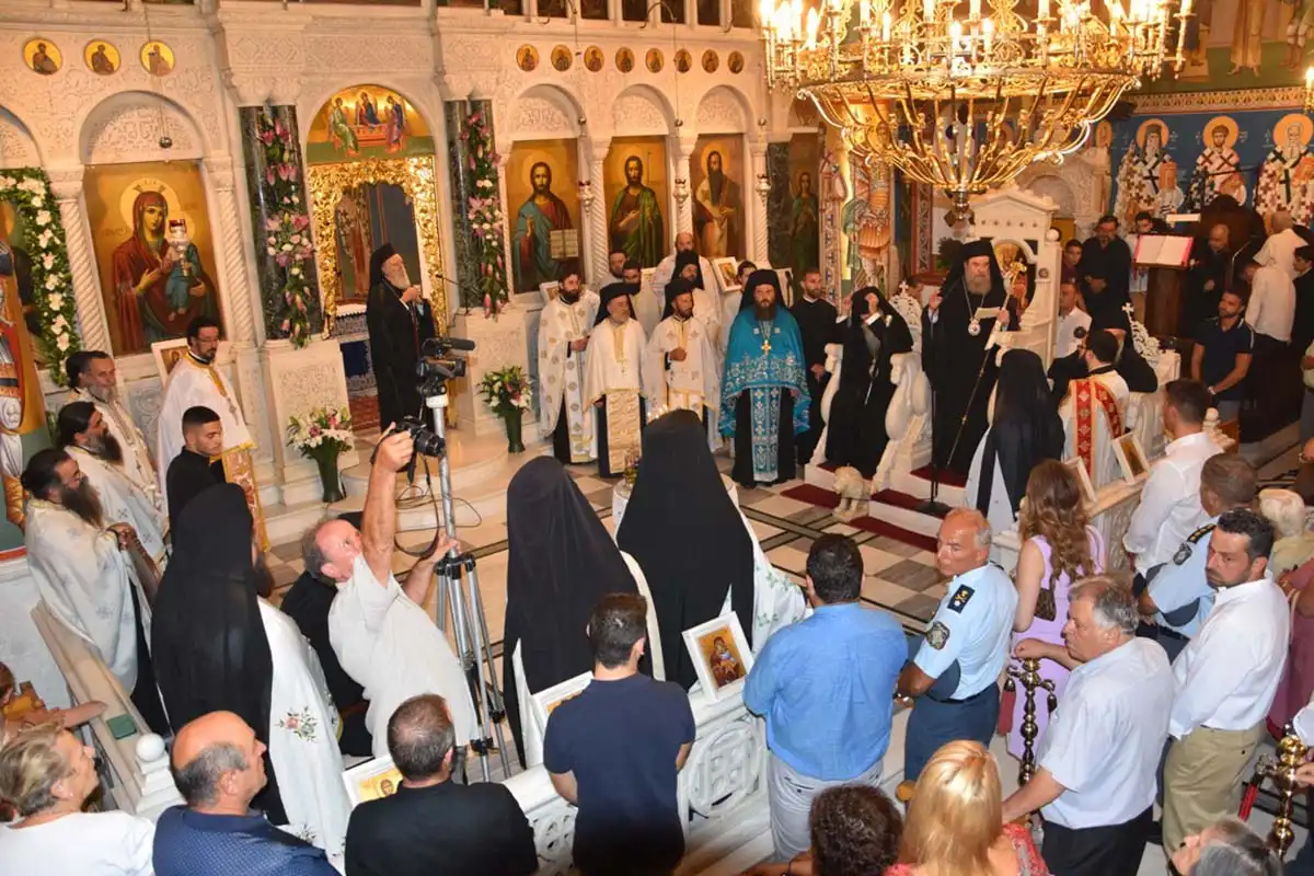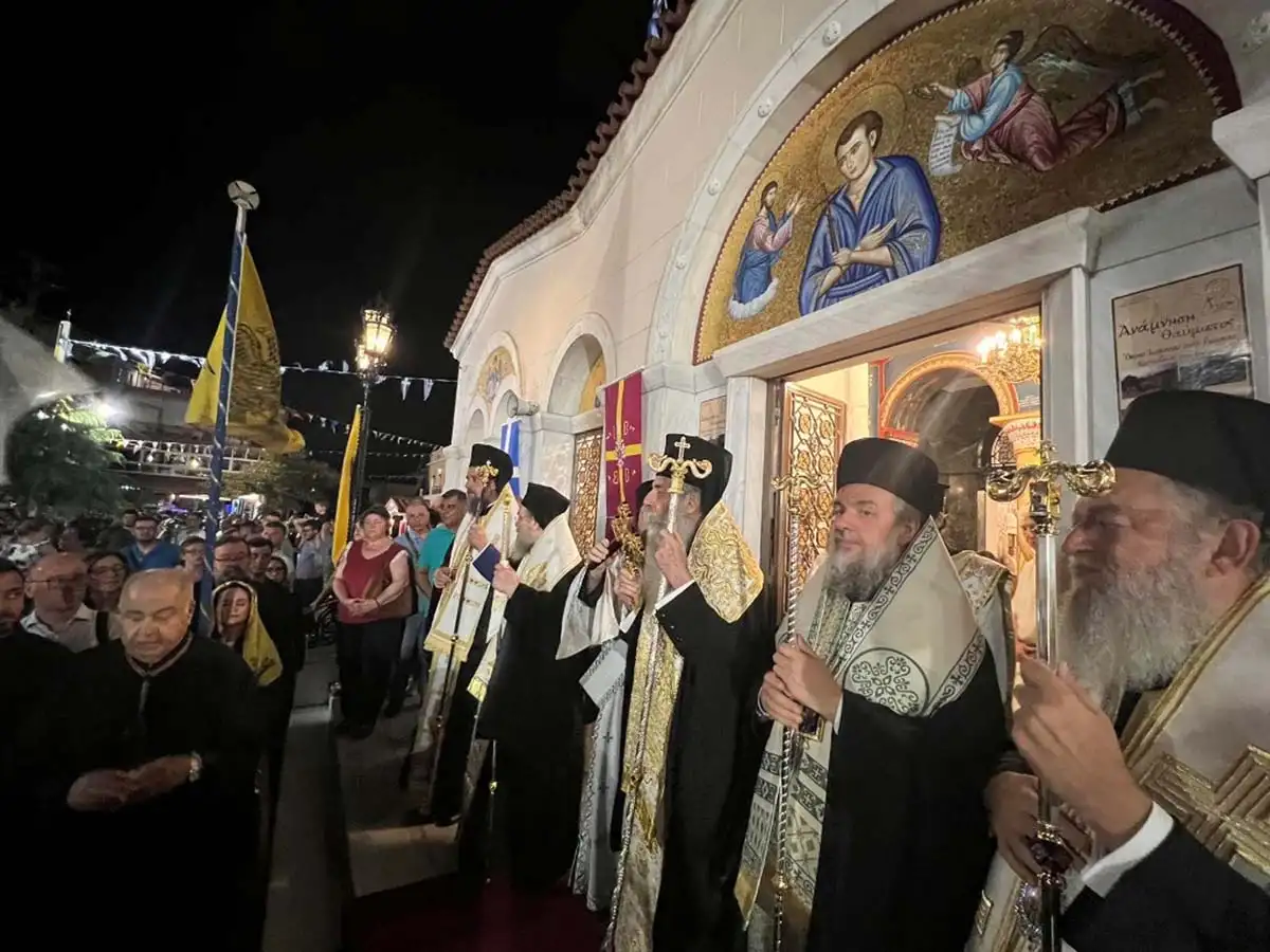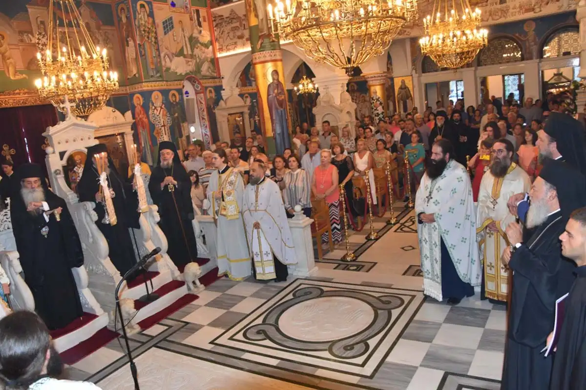 Τη Δευτέρα 7 Αυγούστου 2023, τελέσθηκε ο Όρθρος, χοροστατούντος του Σεβασμιωτάτου Μητροπολίτου Γόρτυνος κ. Νικηφόρου και εν συνεχεία το Αρχιερατικό Συλλείτουργο προεξάρχοντος του Σεβασμιωτάτου Μητροπολίτου Πειραιώς κ. Σεραφείμ με την συμμετοχή όλων των παραπάνω Αρχιερέων.