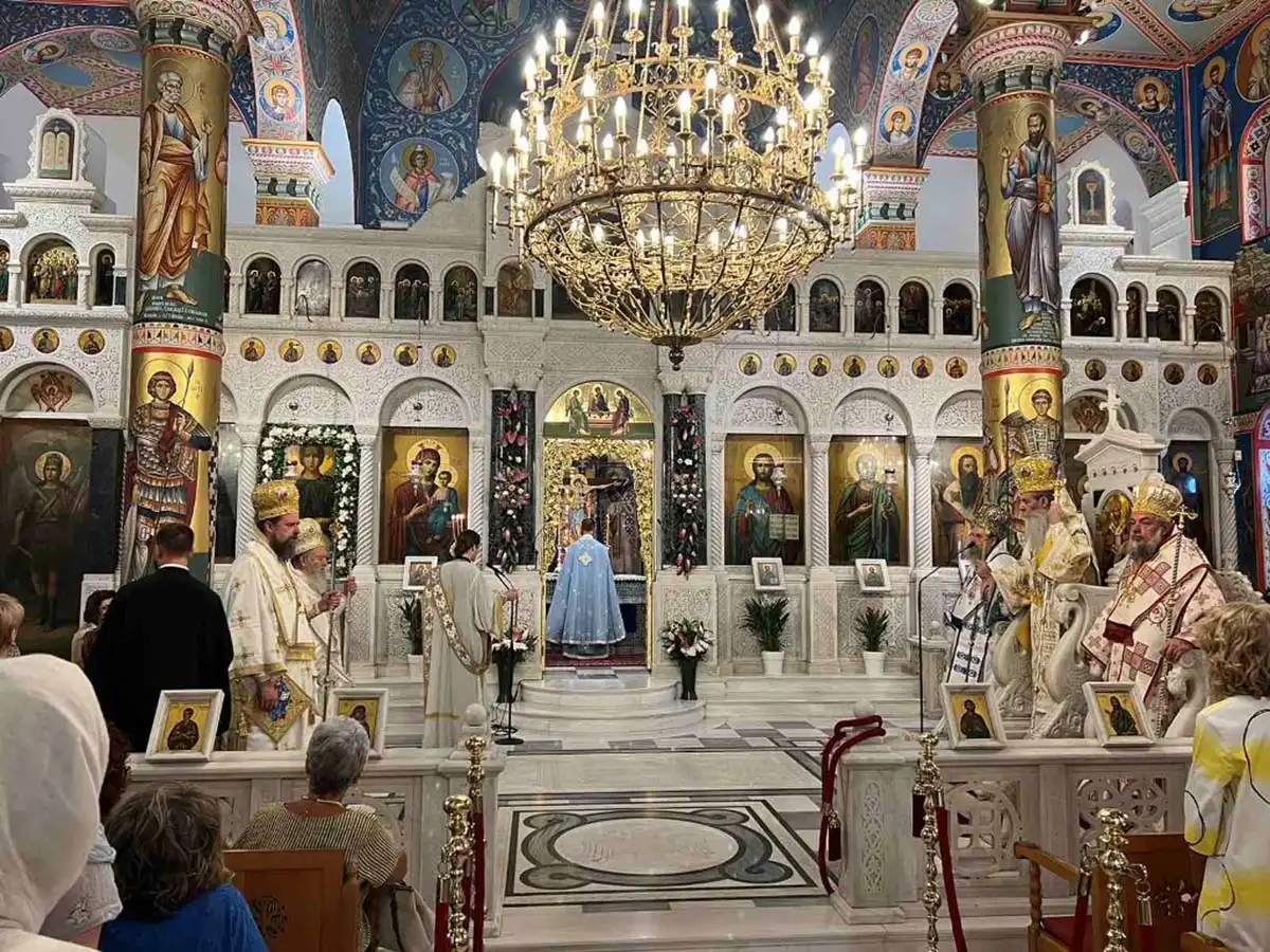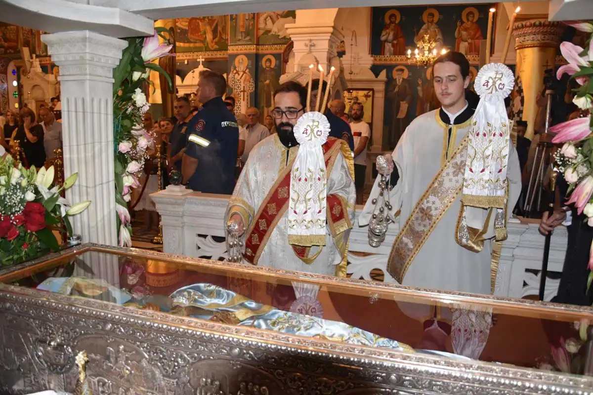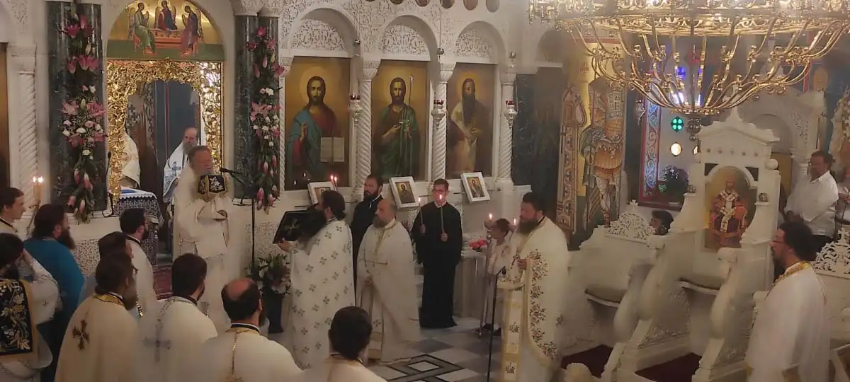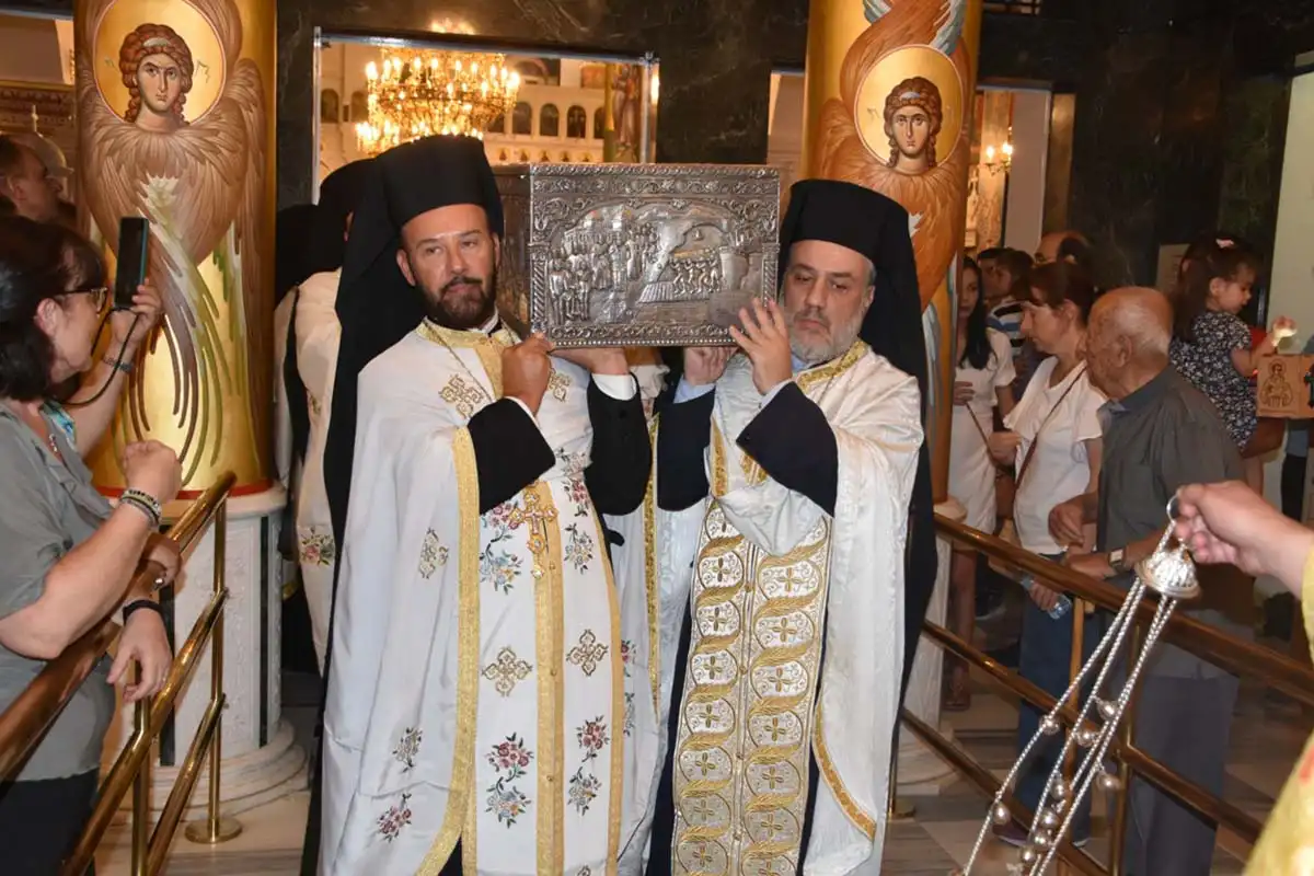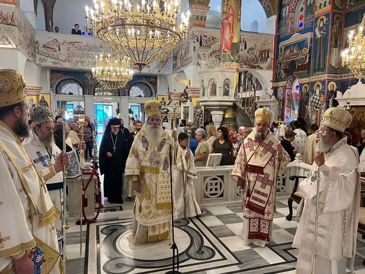 Τη Δευτέρα 7 Αυγούστου 2023, τελέσθηκε ο Όρθρος, χοροστατούντος του Σεβασμιωτάτου Μητροπολίτου Γόρτυνος κ. Νικηφόρου και εν συνεχεία το Αρχιερατικό Συλλείτουργο προεξάρχοντος του Σεβασμιωτάτου Μητροπολίτου Πειραιώς κ. Σεραφείμ με την συμμετοχή όλων των παραπάνω Αρχιερέων.