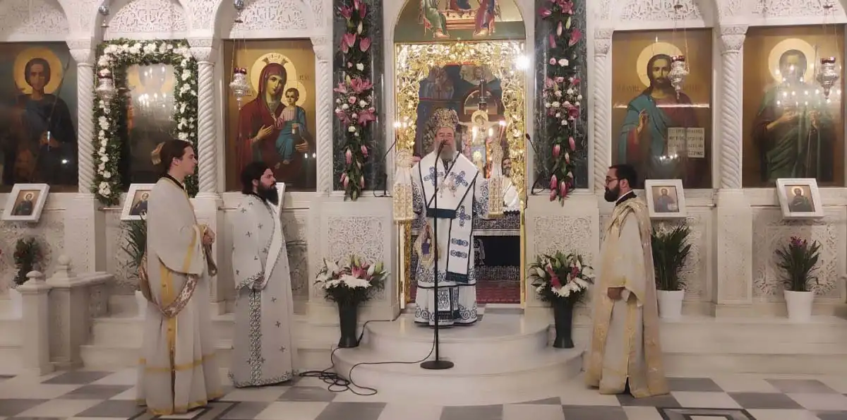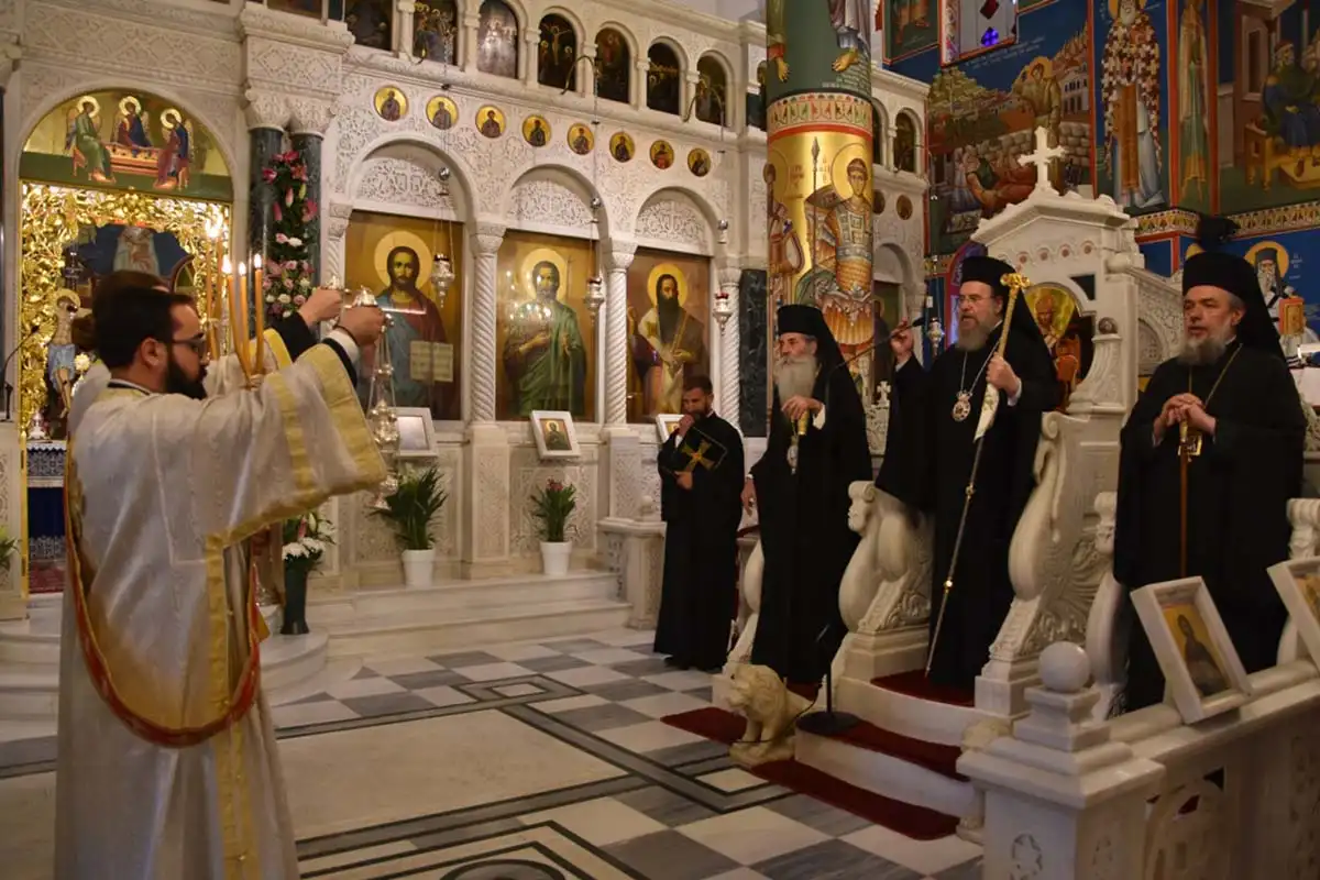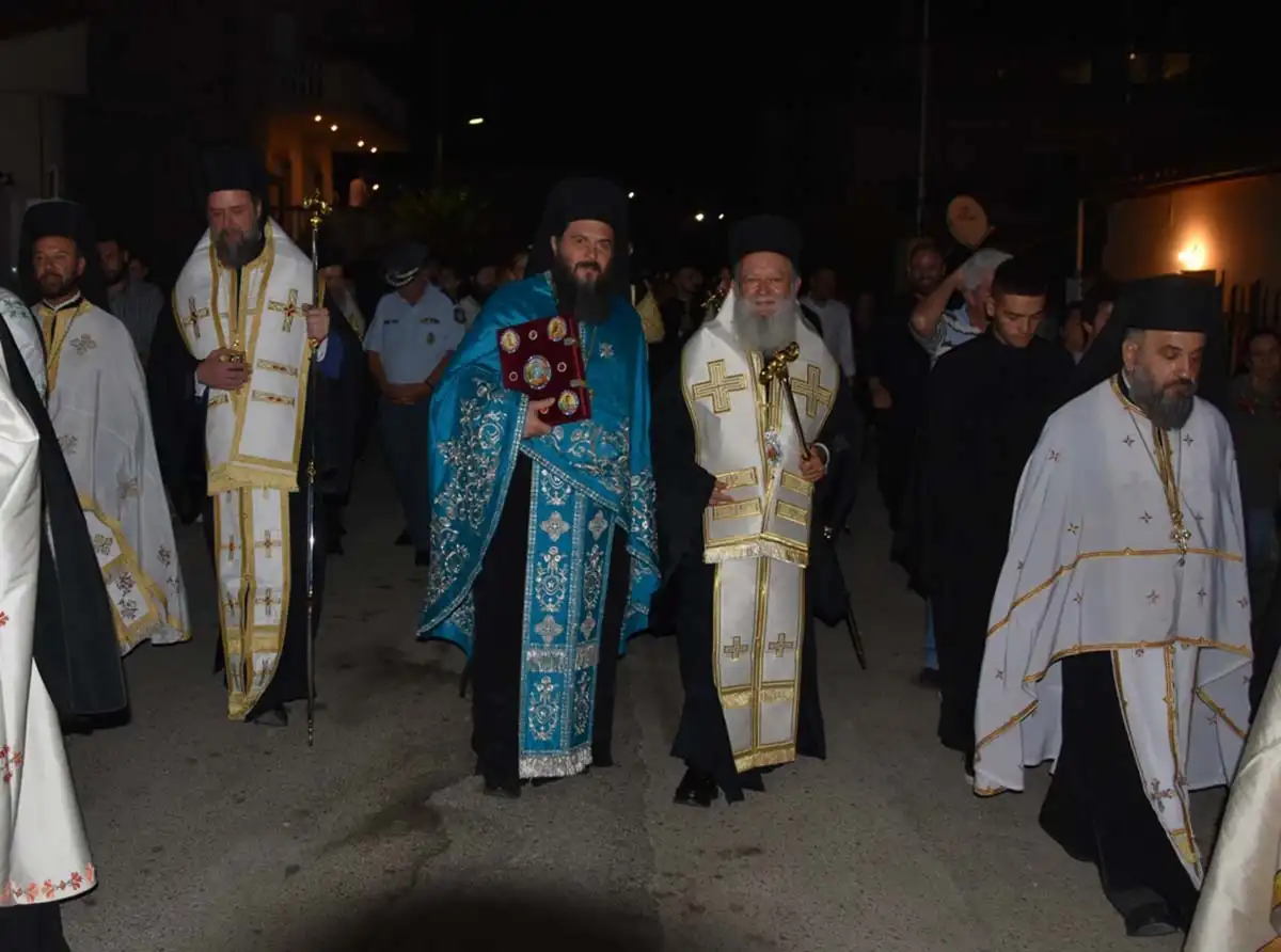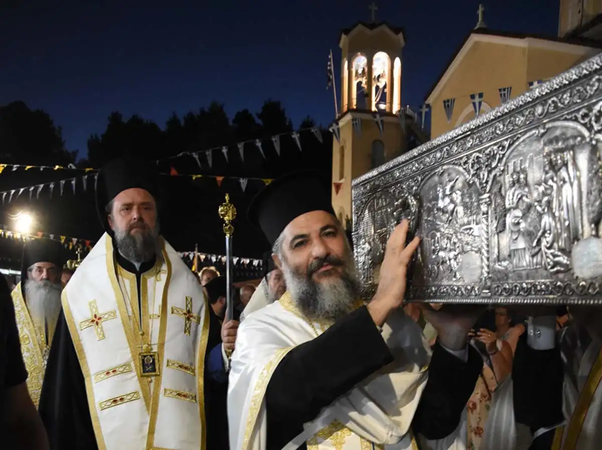 Τη Δευτέρα 7 Αυγούστου 2023, τελέσθηκε ο Όρθρος, χοροστατούντος του Σεβασμιωτάτου Μητροπολίτου Γόρτυνος κ. Νικηφόρου και εν συνεχεία το Αρχιερατικό Συλλείτουργο προεξάρχοντος του Σεβασμιωτάτου Μητροπολίτου Πειραιώς κ. Σεραφείμ με την συμμετοχή όλων των παραπάνω Αρχιερέων.