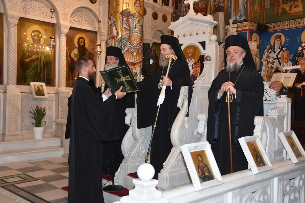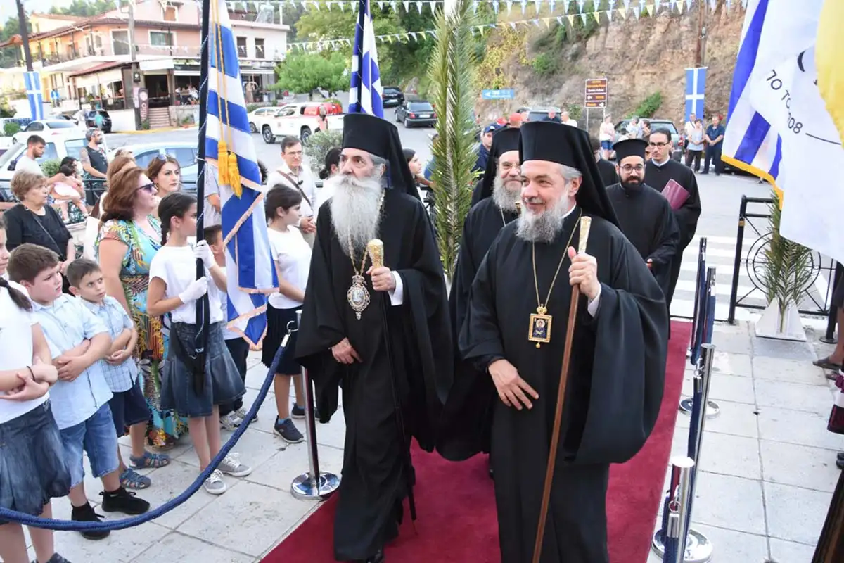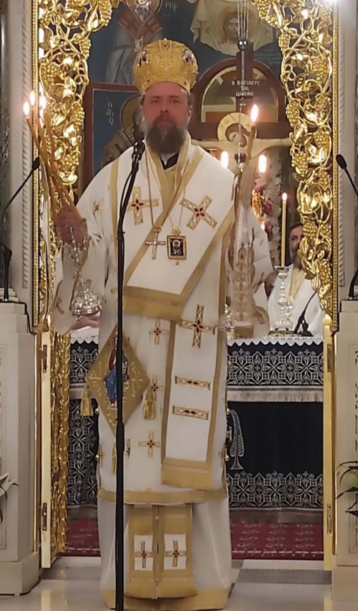 Κατά τη διάρκεια του Εσπερινού, ο Σεβασμιώτατος Μητροπολίτης Χαλκίδος καλωσόρισε του αγίους Αρχιερείς και εξιστόρησε την σειρά των γεγονότων της 6ης και 7ης Αυγούστου 2021 και την θαυμαστή επέμβαση του Θεού διά του Οσίου Ιωάννου.