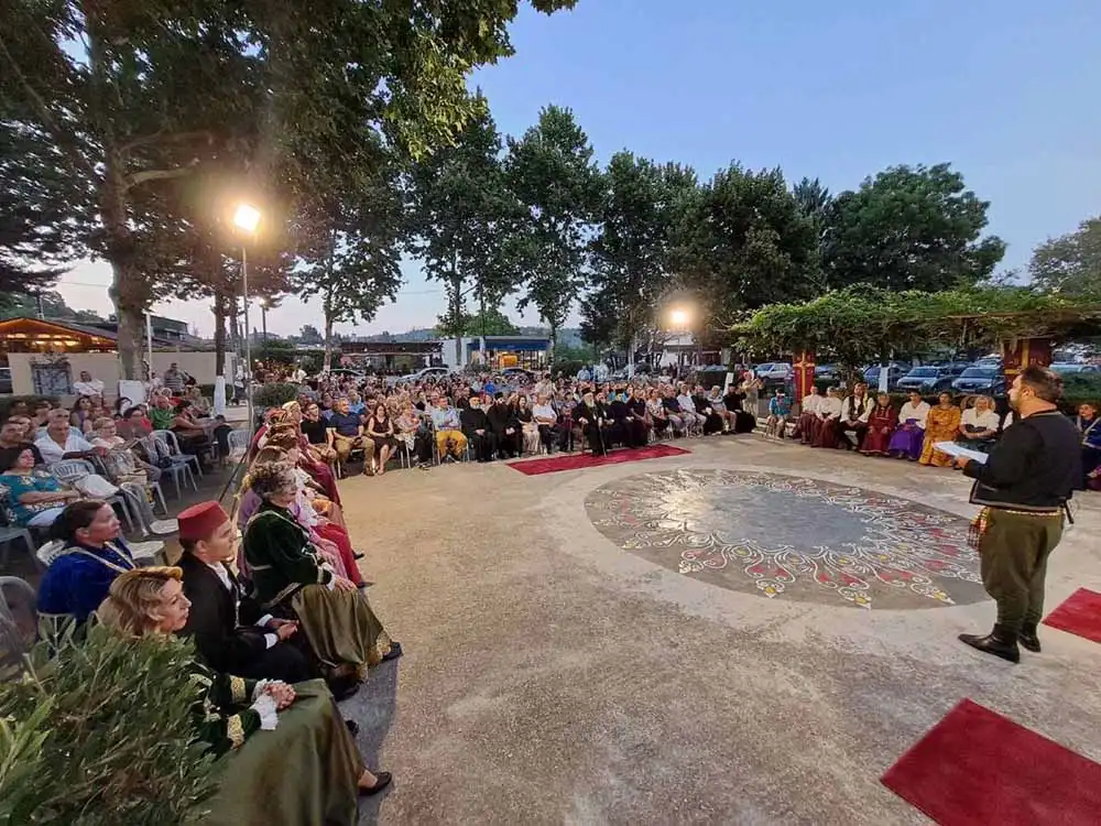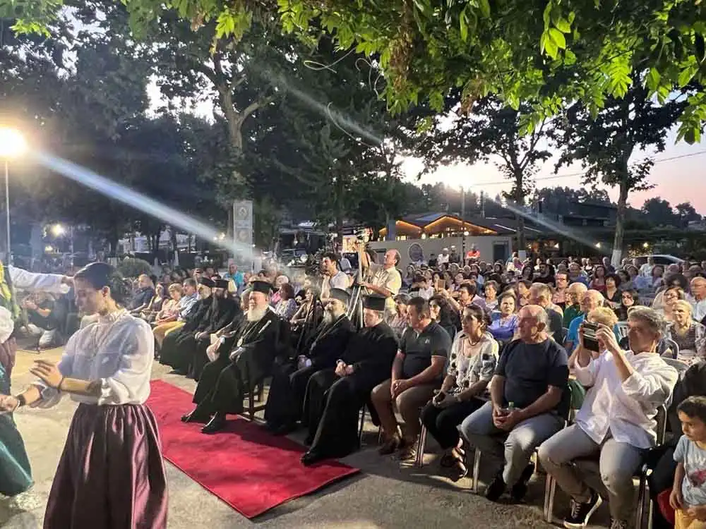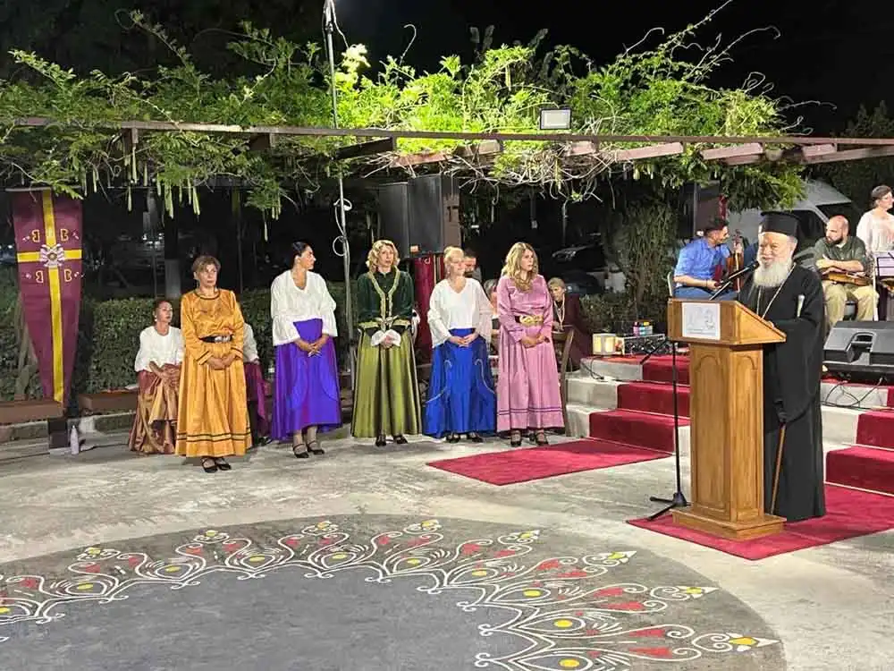 Στο κλείσιμο του, ο Σεβασμιώτατος Ποιμενάρχης μας, Μητροπολίτης Χαλκίδος κ. Χρυσόστομος, συνεχάρη τόσο τους συνδιοργανωτές όσο και όλους τους συλλόγους που συμμετείχαν και συνέβαλλαν για την άρτια διοργάνωση της παράστασης και την επιτυχία της, ενώ έκανε ιδιαίτερη μνεία και ευχαρίστησε για λογαριασμό του Ιερού Προσκυνήματος όσους εργάστηκαν για την προετοιμασία του χώρου της εκδηλώσεως στην αυλή του Ιερού Προσκυνήματος και ιδιαιτέρως τον Ιερατικό Προϊσταμενο πρωτοπρεσβ. Ιωάννη Μάρκου, τον Γενικό Γραμματέα του Ι. Προσκυνήματος κ. Δημήτριο Τούση και τον κ. Πρόδρομο Ενωτιάδη-μέλος του Διοικητικού Συμβουλίου, οι οποίοι είχαν την έμπνευση, την προθυμία και την εργατικότητα, ώστε στην αυλή του της Καππαδοκίας αστέρος Οσίου Ιωάννου, εκατό χρόνια μετά την έλευσή Του στην Εύβοια, να διαμορφωθεί ο χώρος της εκδηλώσεως και να πραγματοποιηθεί για πρώτη φορά μια τέτοια εκδήλωση στο πάρκο του Ιερού Προσκυνήματος, ενώ μίλησε για τη δύναμη της αγάπης που είναι κινητήριος και βασική και τα μέλη της Εκκλησίας και για όσους εμπιστεύονται τους εαυτούς τους στην αυλή της Εκκλησίας, που μέσα στη στοργική Της αγκαλιά ενώνει τους ανθρώπους που μοιράζονται χαρές και λύπες. Δεν παρέλειψε να αναφερθεί στις μοναδικές θυσίες που υπέστησαν οι Καππαδόκες, όταν ανέστιοι πλέον, ήρθαν στον τόπο μας 100 χρόνια πριν, με μόνο τους θησαυρό τον Άγιο της προσφυγιάς Ιωάννη το Ρώσσο.